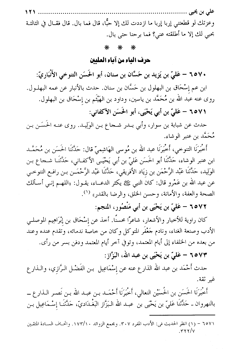 6570- علي بْن يزيد بْن حسان بْن سنان، أَبُو الحسن التنوخي الأنباري: