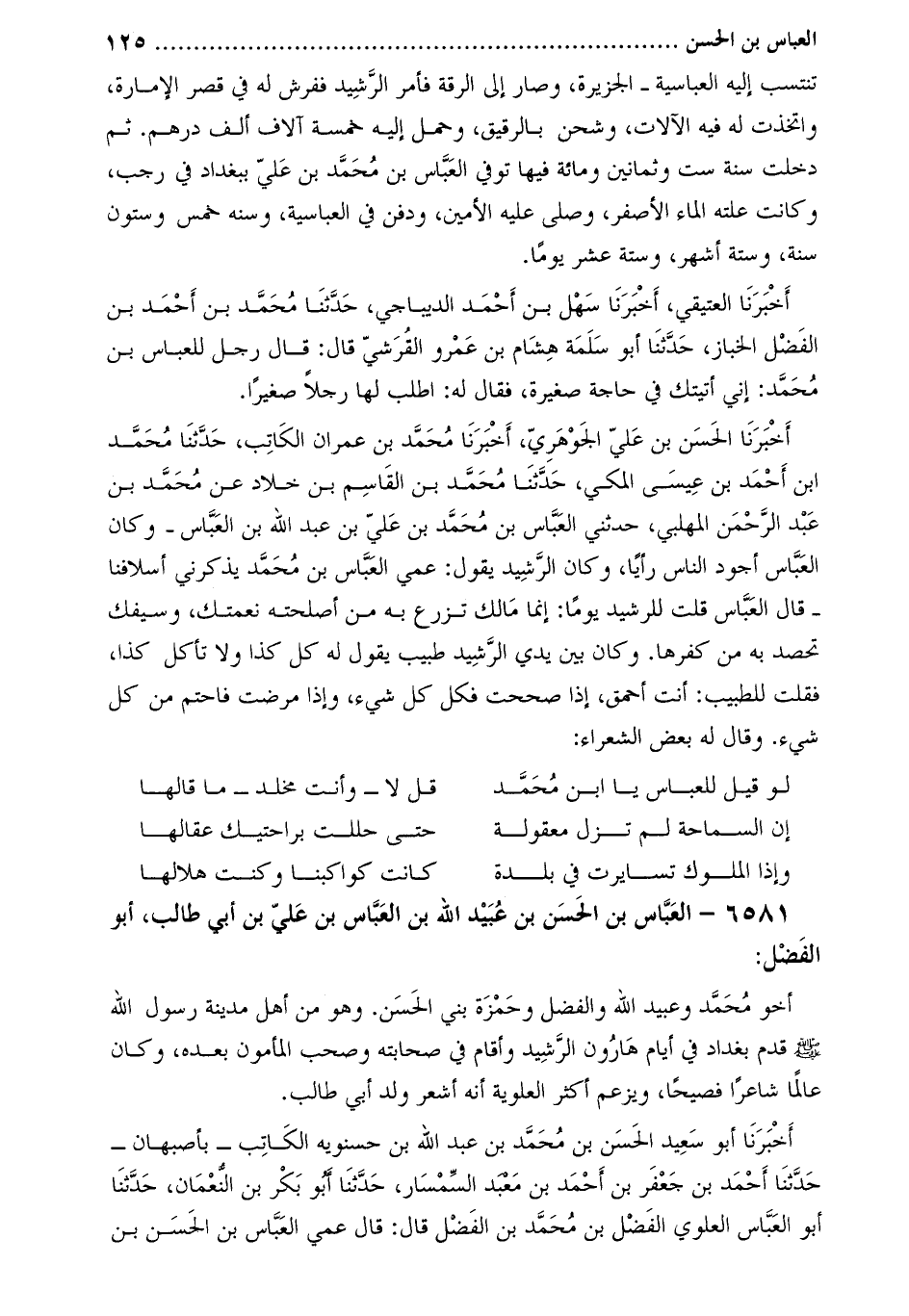 6581- الْعَبَّاس بْن الْحَسَن بْن عُبيد اللَّه بْن العباس بْن علي بْن أبي طالب، أَبُو الفضل: