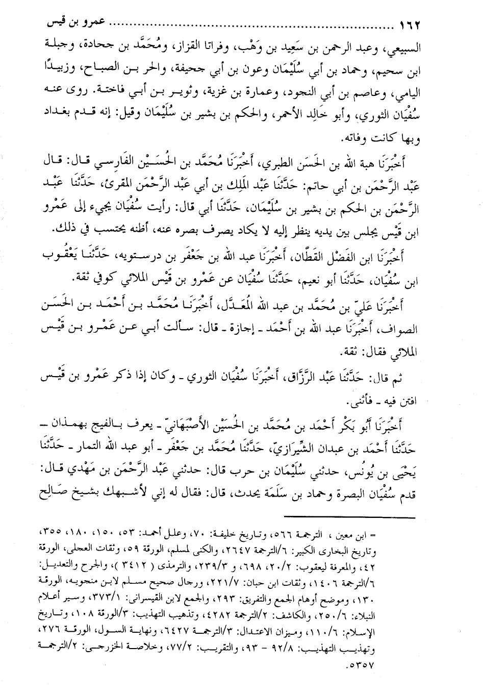 أَخْبَرَنَا ابْن الفضل القطّان، أخبرنا عبد الله بن جعفر بن درستويه، حدّثنا يعقوب ابن سفيان، حدّثنا أبو نعيم، حَدَّثَنَا سُفْيَانُ عَنْ عَمْرِو بْنِ قَيْسٍ الْمُلائِيِّ كوفي ثقة.
