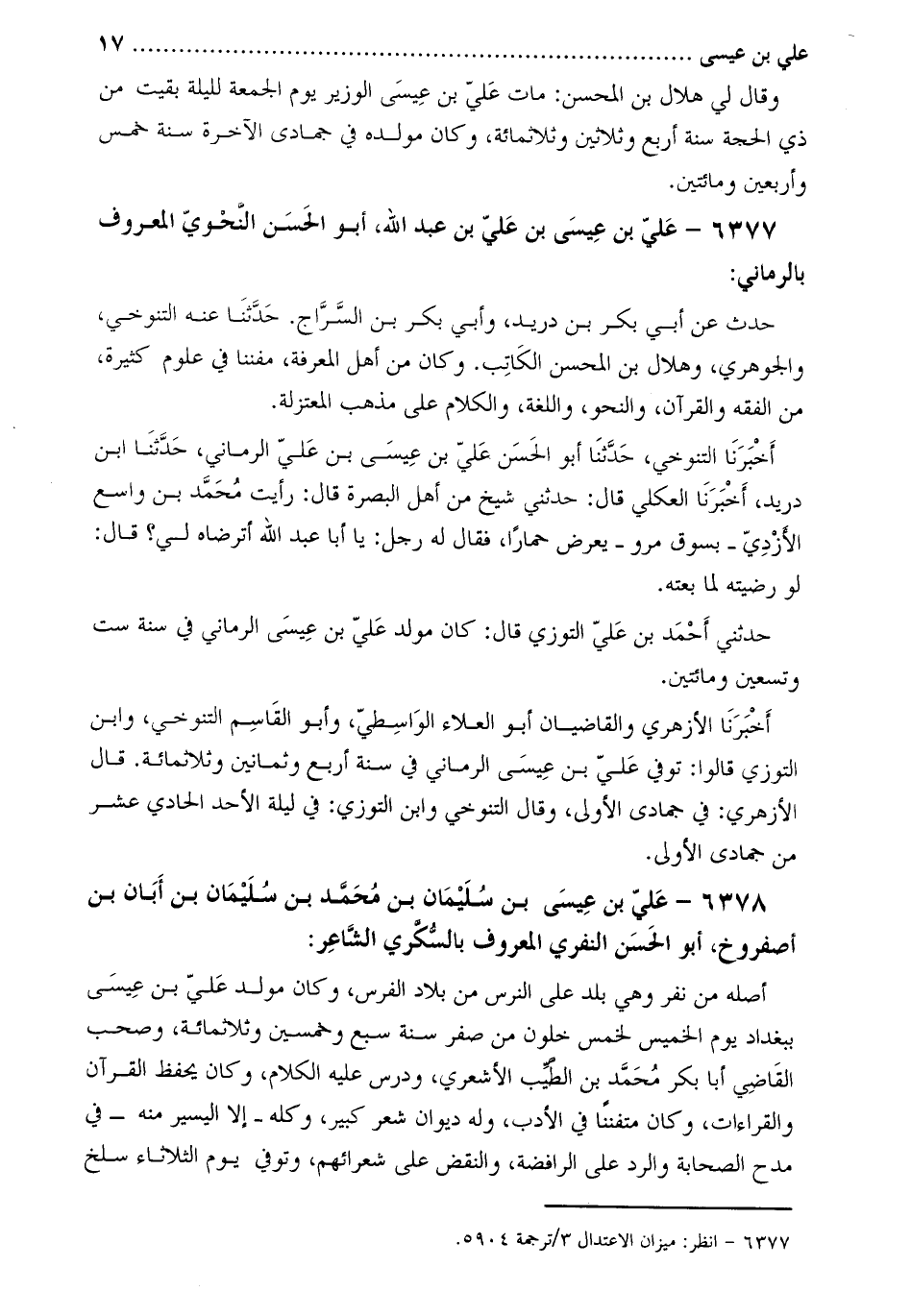 6377- علي بْن عيسى بْن علي بْن عَبْد اللَّه، أَبُو الحسن النحوي المعروف بالرماني [1] :