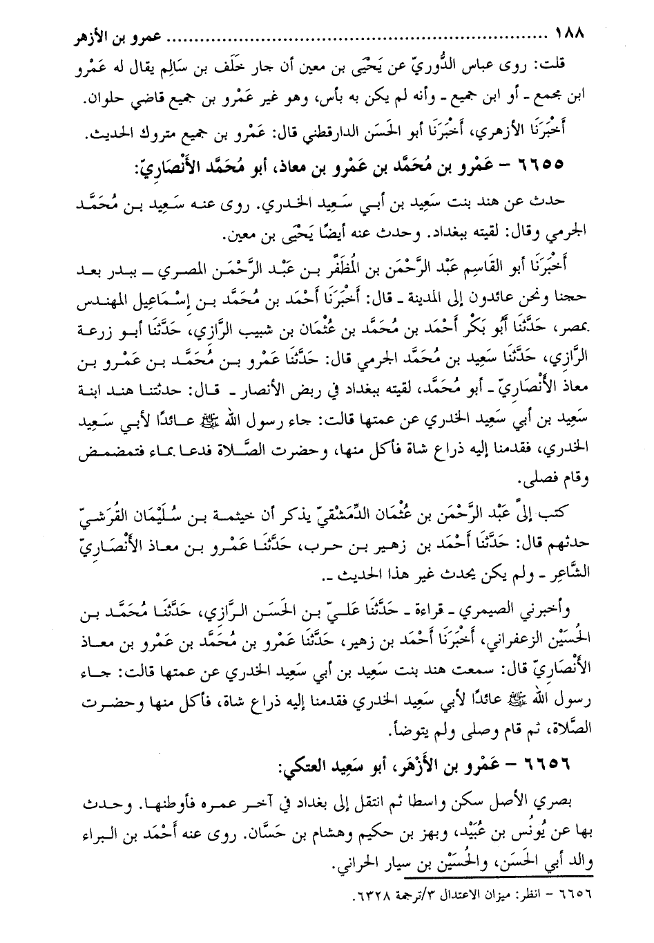 6655- عمرو بْن مُحَمَّد بْن عمرو بْن معاذ، أَبُو مُحَمَّد الأنصاري: