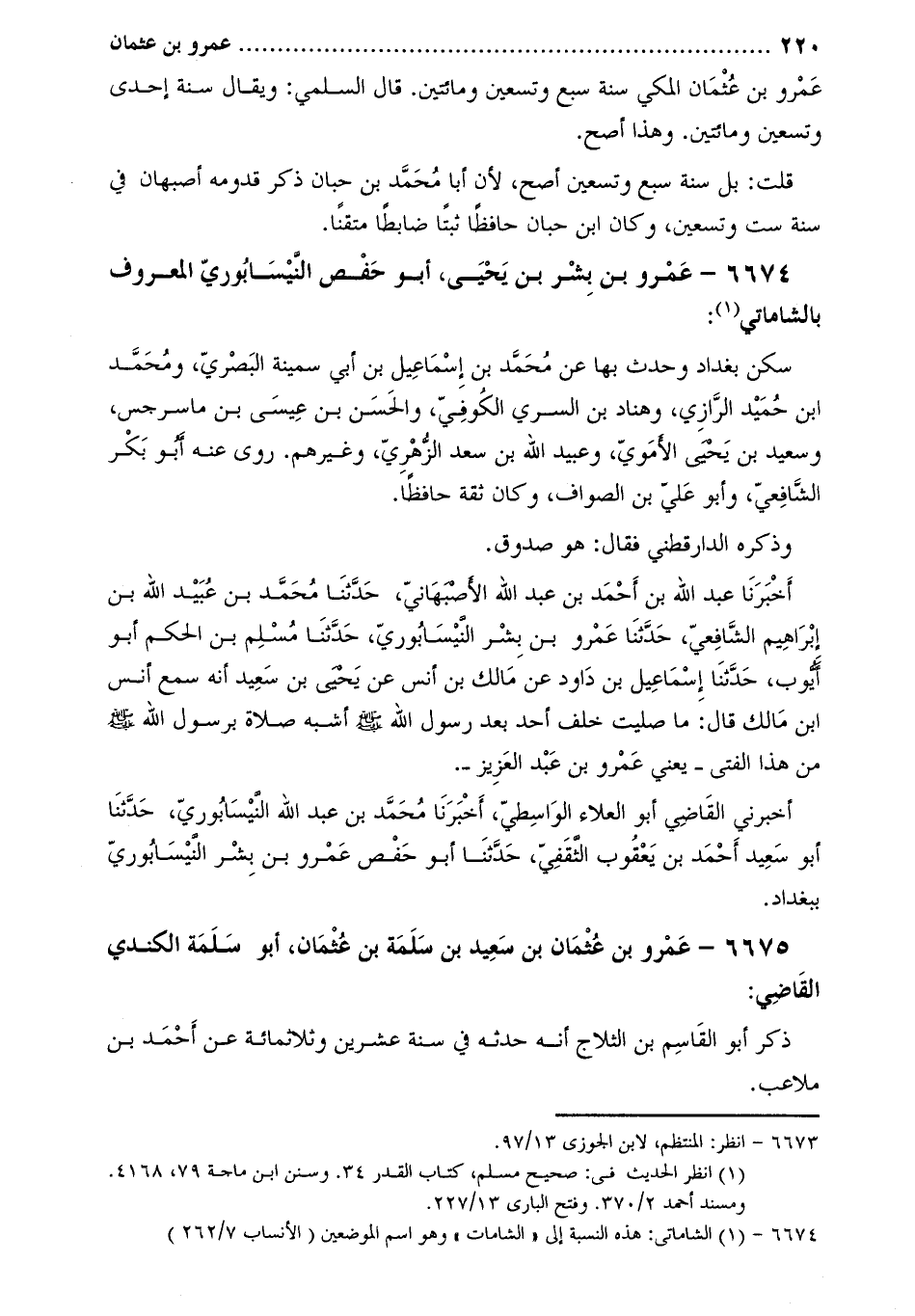 [1] 6674- الشاماتي: هذه النسبة إلى «الشامات» وهو اسم الموضعين (الأنساب 7/262)