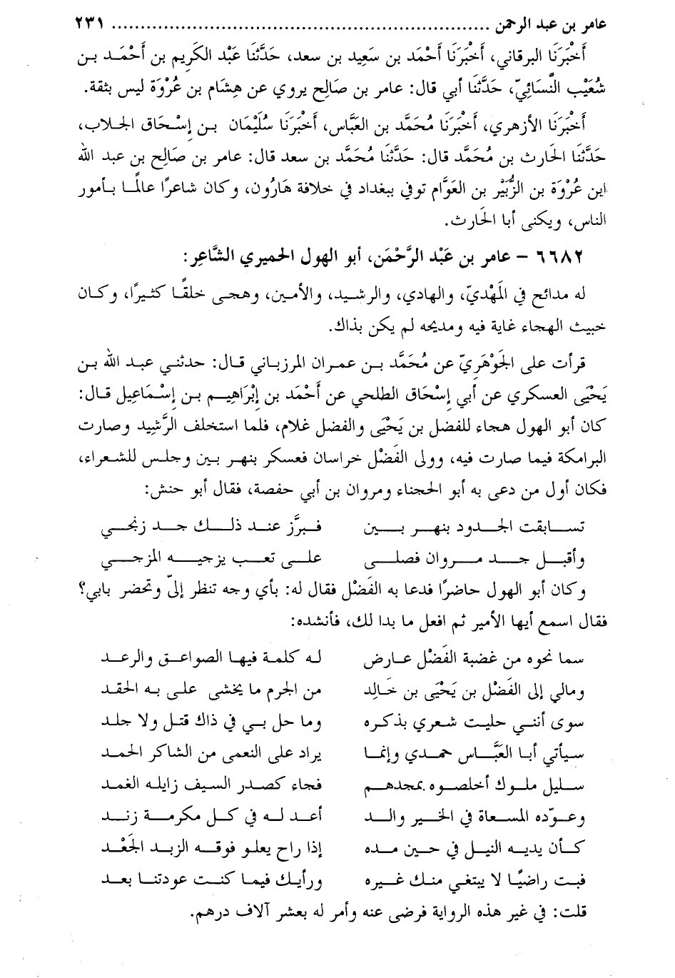 6682- عامر بْن عبد الرحمن، أَبُو الهول الحميري الشاعر: