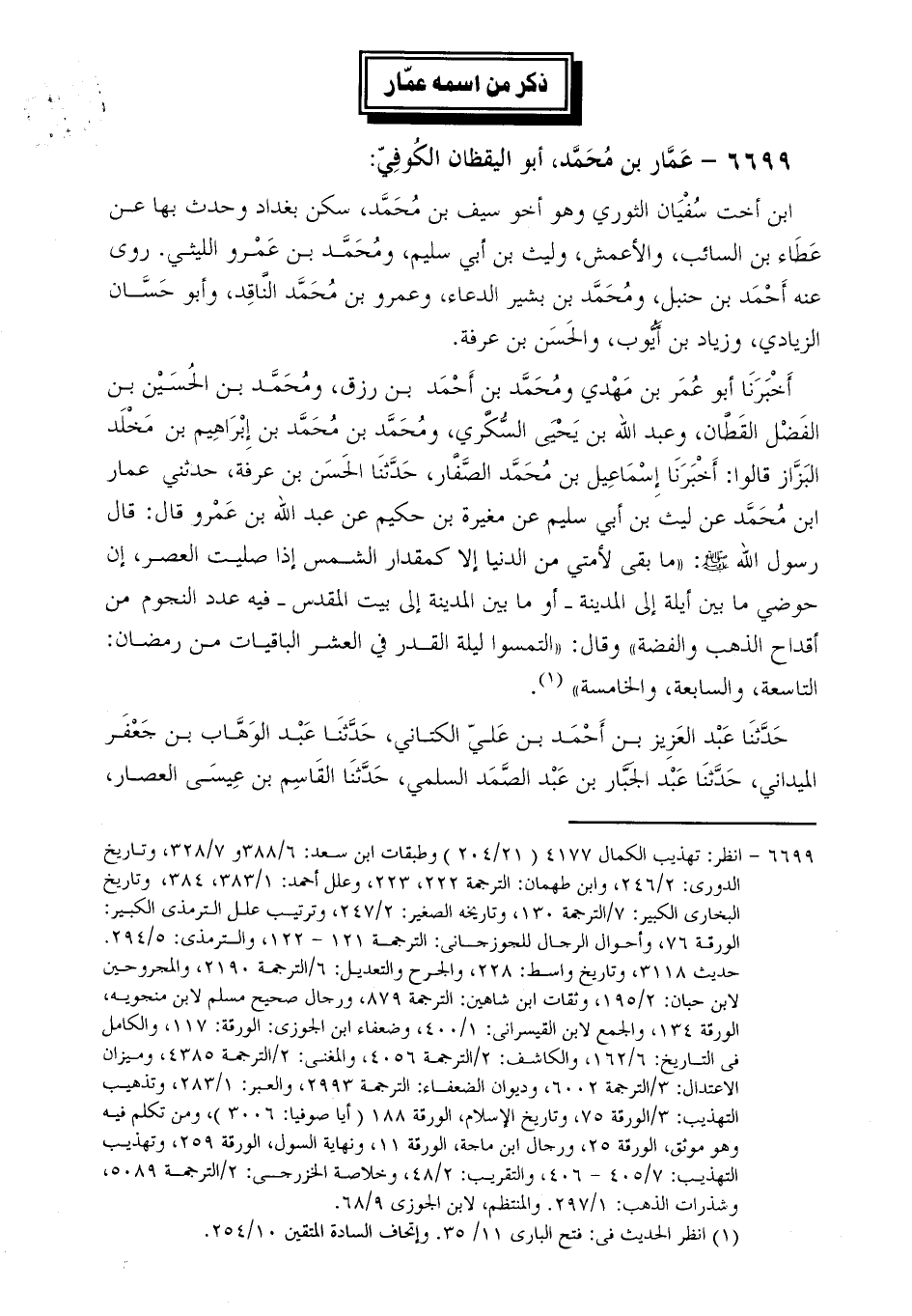 [1] 6699- انظر: تهذيب الكمال 4177 (21/204) وطبقات ابن سعد: 6/388 و 7/328، وتاريخ الدوري: 2/246، وابن طهمان: الترجمة 222، 223، وعلل أحمد: 1/383، 384، وتاريخ البخاري الكبير: 7/الترجمة 130، وتاريخه الصغير: 2/247، وترتيب علل الترمذي الكبير: