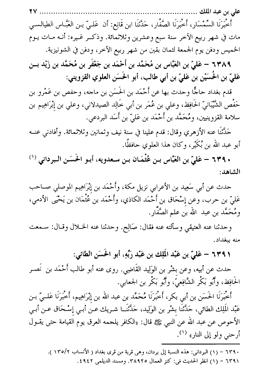 [1] 6390- البردانى: هذه النسبة إلى بردان، وهي قرية من قرى بغداد (الأنساب 2/135) .