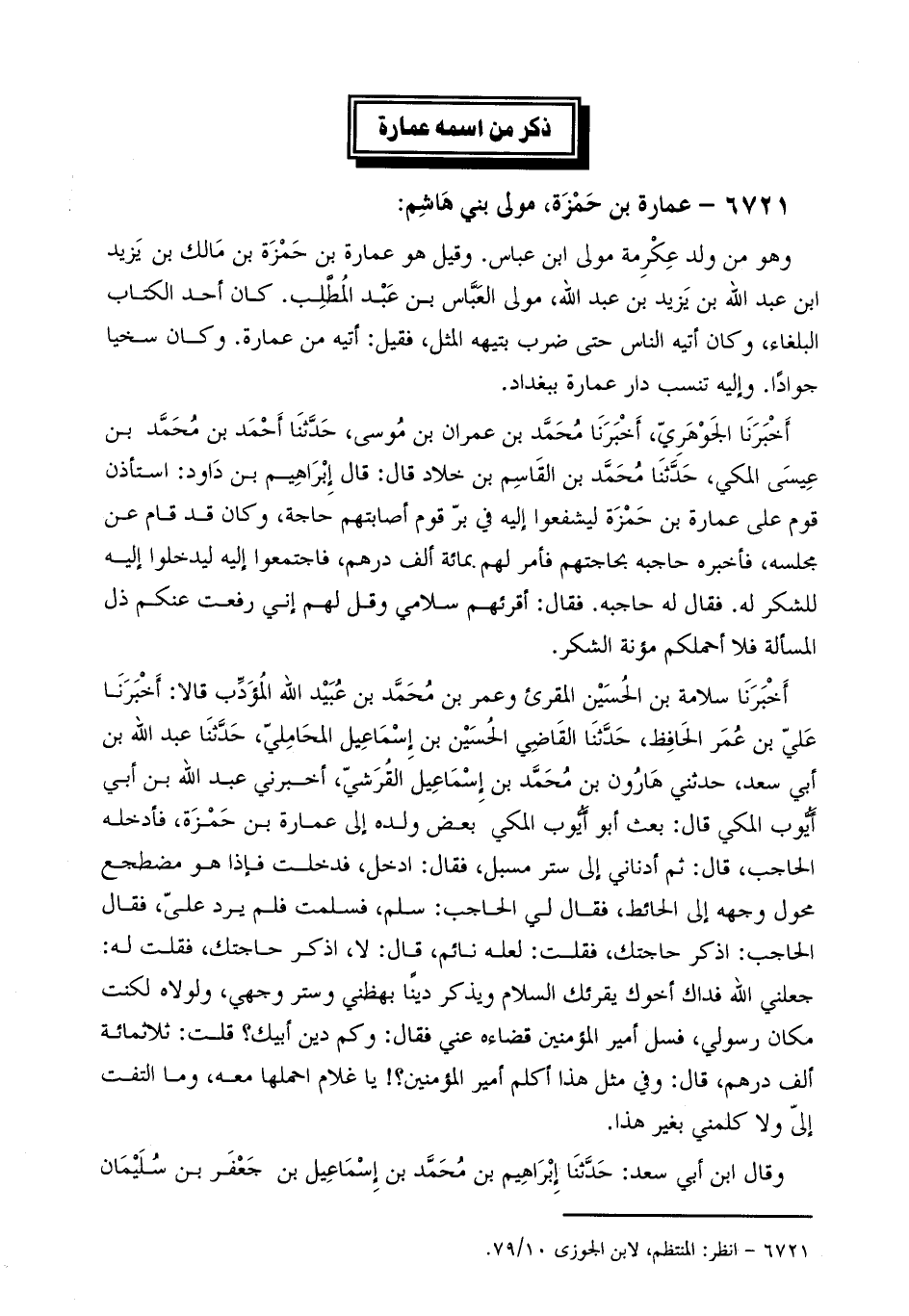 6721- عمارة بْن حمزة، مولى بني هاشم [1] :