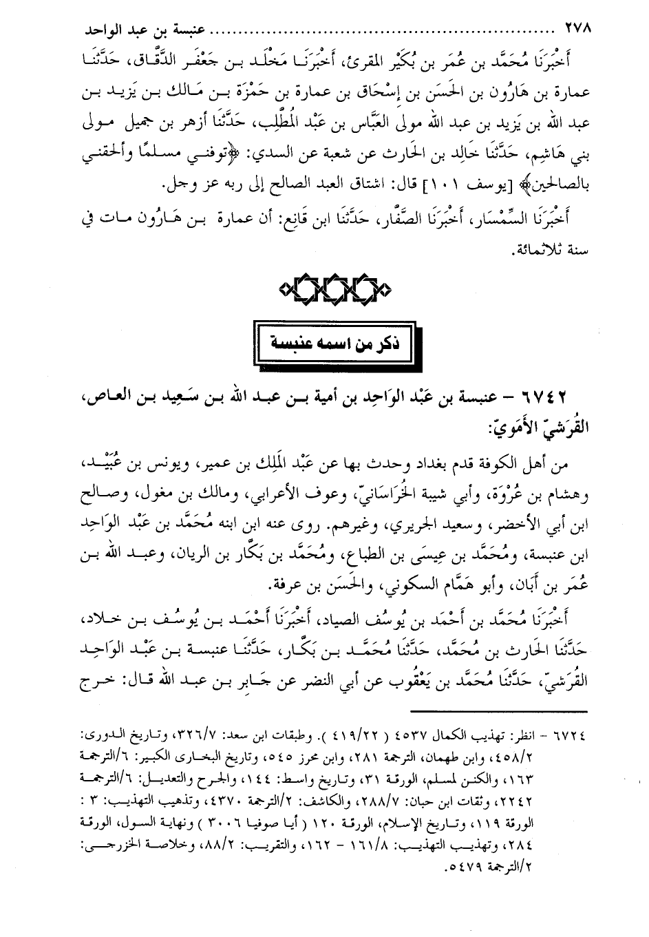 6742- عنبسة بْن عبد الواحد بْن أمية بْن عَبْد اللَّهِ بْن سَعِيد بْن العاص، القرشي الأموي [1] :