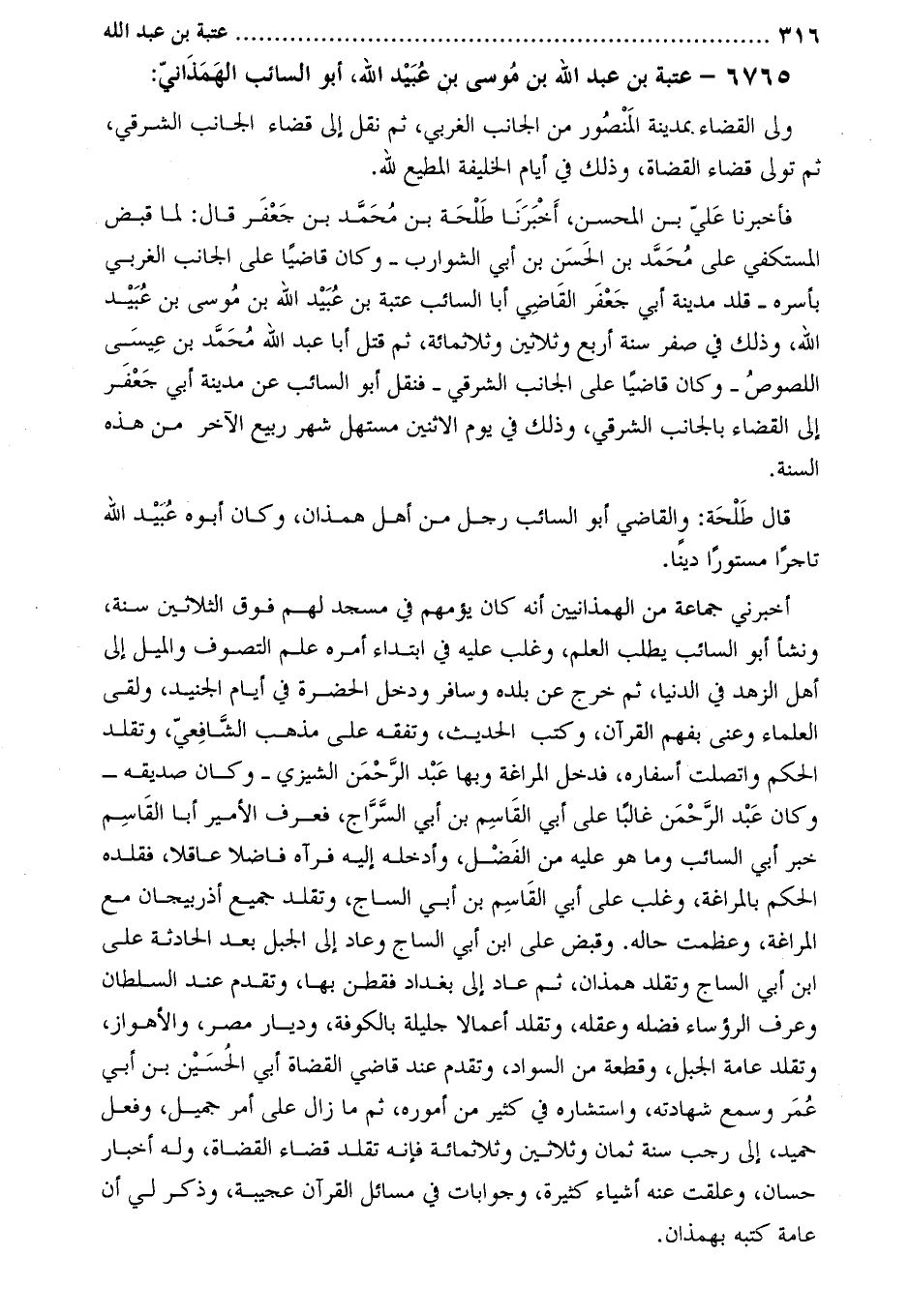6765- عتبة بن عبد اللَّه بْن موسى بْن عبيد اللَّه، أَبُو السائب الهمذاني: