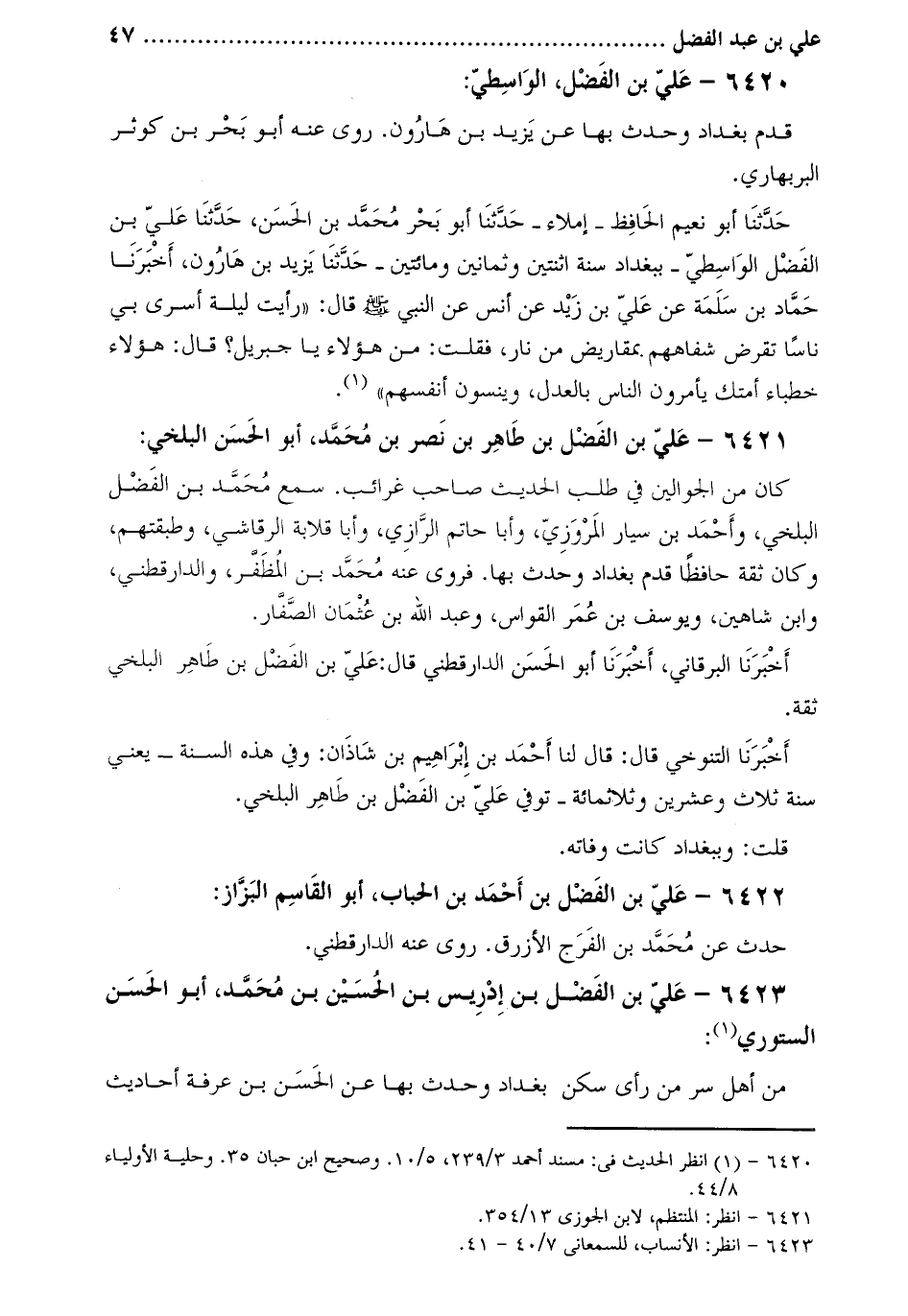 6421- علي بْن الفضل بْن طاهر بْن نصر بْن مُحَمَّد، أَبُو الحسن البلخي [2] :