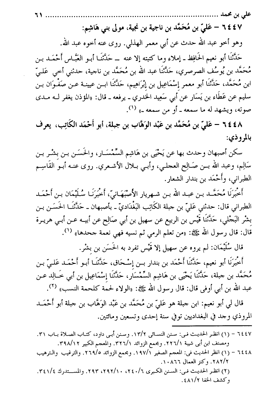 6447- عليّ بن محمّد بن ناجية بن نجية، مولى بني هاشم: