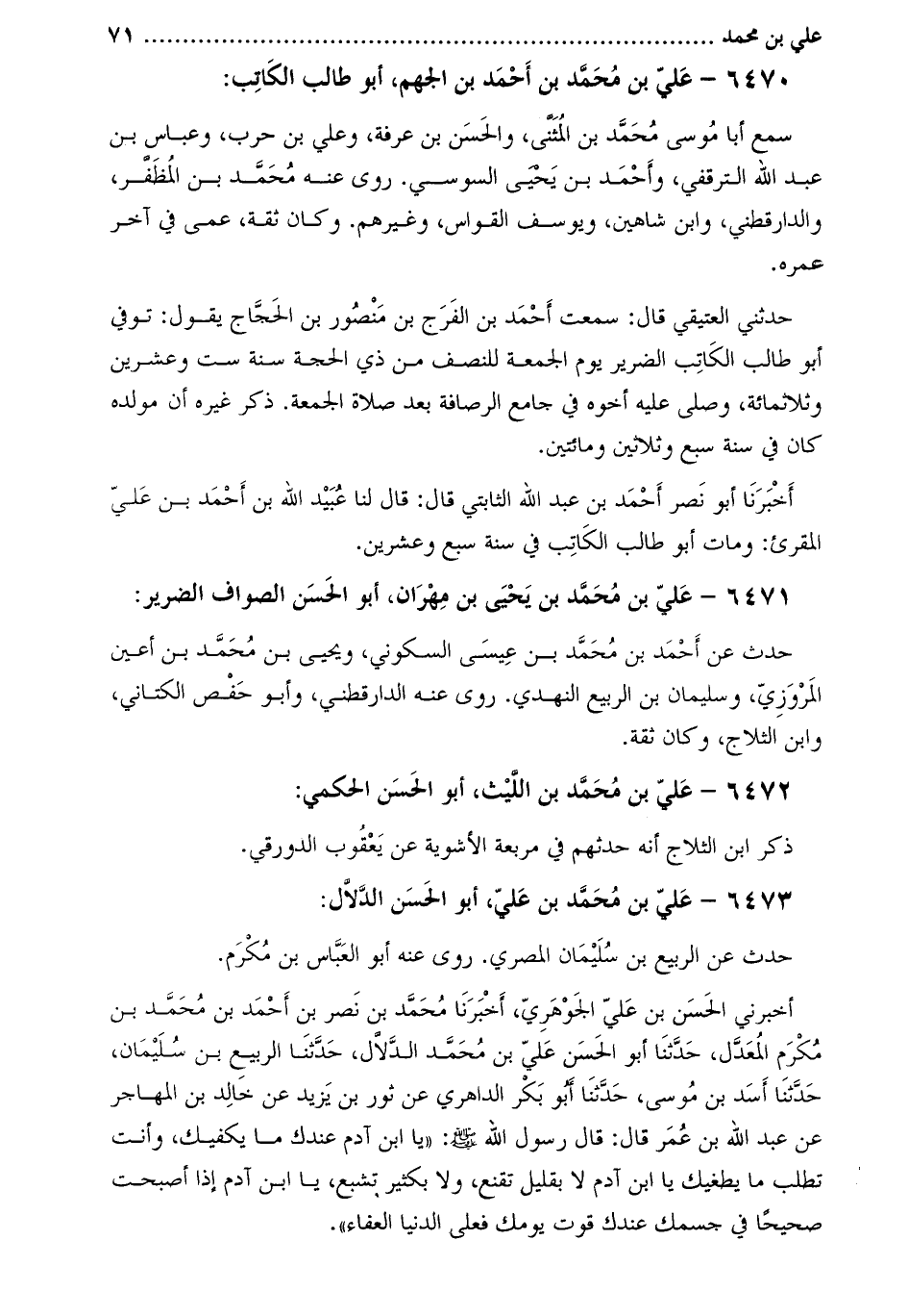 6473- عليّ بْن مُحَمَّد بْن عليّ، أَبُو الْحَسَن الدلال: