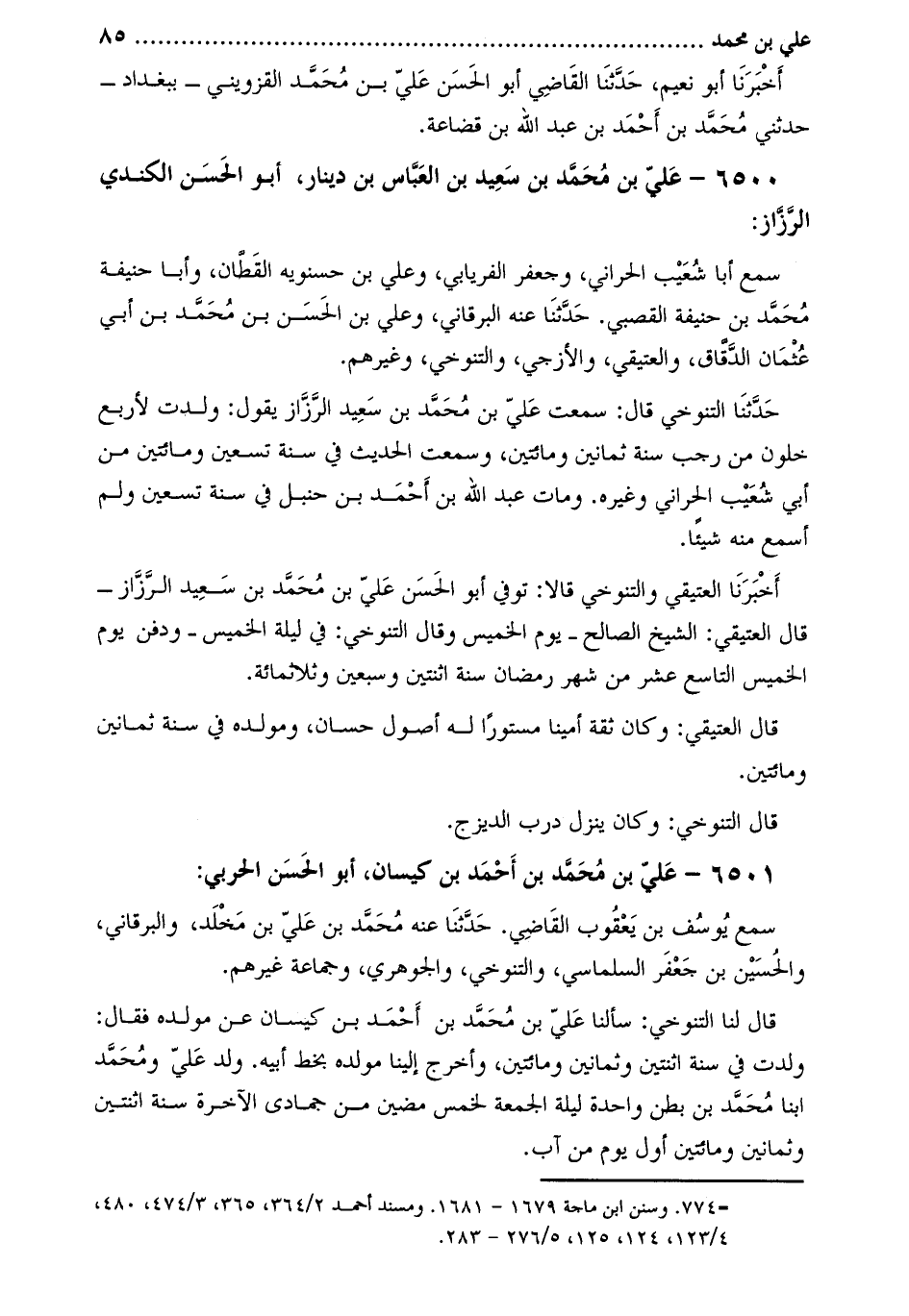 6501- عَلِيّ بْن مُحَمَّدِ بْنِ أَحْمَدَ بْنِ كيسان، أَبُو الحسن الحربي: