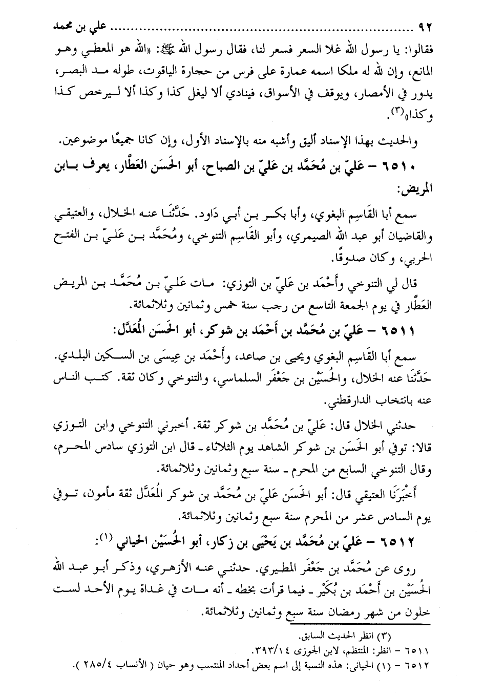 [2] 6511- انظر: المنتظم، لابن الجوزي 14/393.