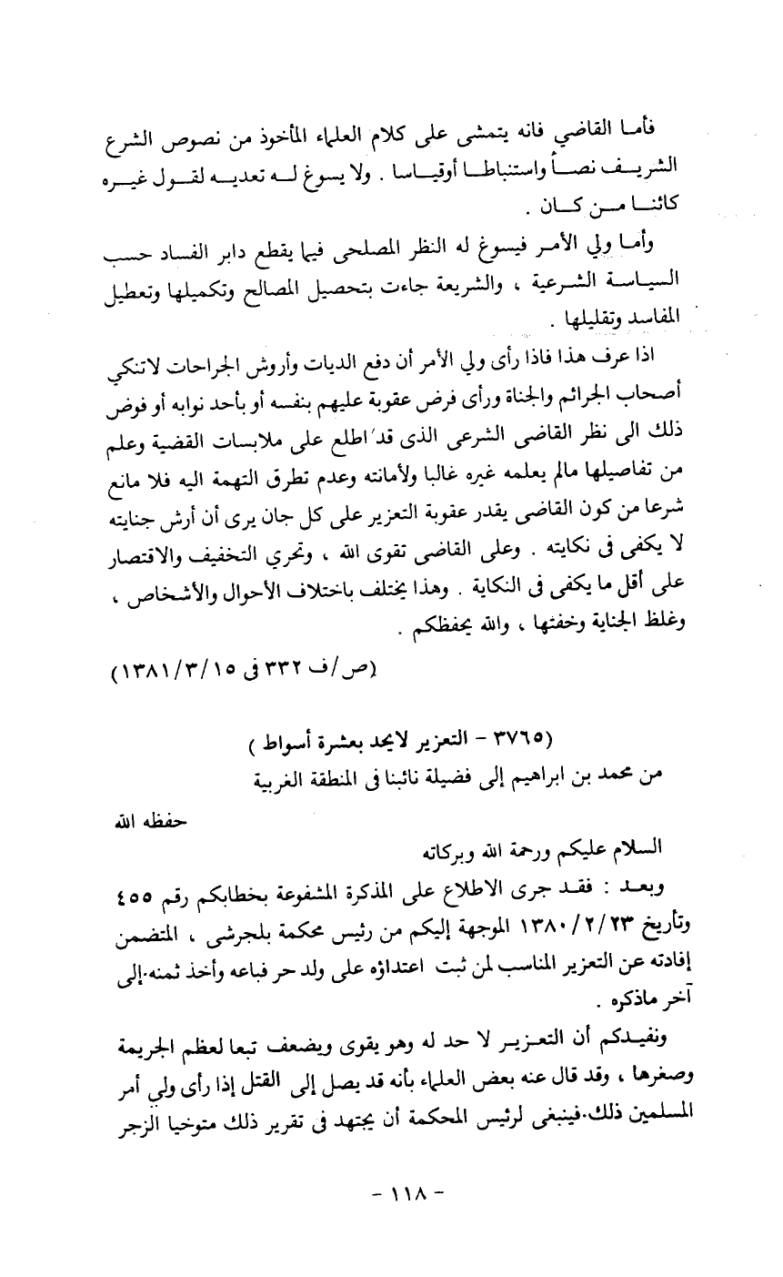 فقد جرى الإطلاع على المذكرة المشفوعة بخطابكم رقم 455 وتاريخ 23/2/1380 الموجهة إليكم من رئيس محكمة بلجرشي، المتضمن إفادته عن التعزير المناسب لمن ثبت اعتداؤه على ولد حر فباعه وأخذ ثمنه إلى آخر ما ذكر.