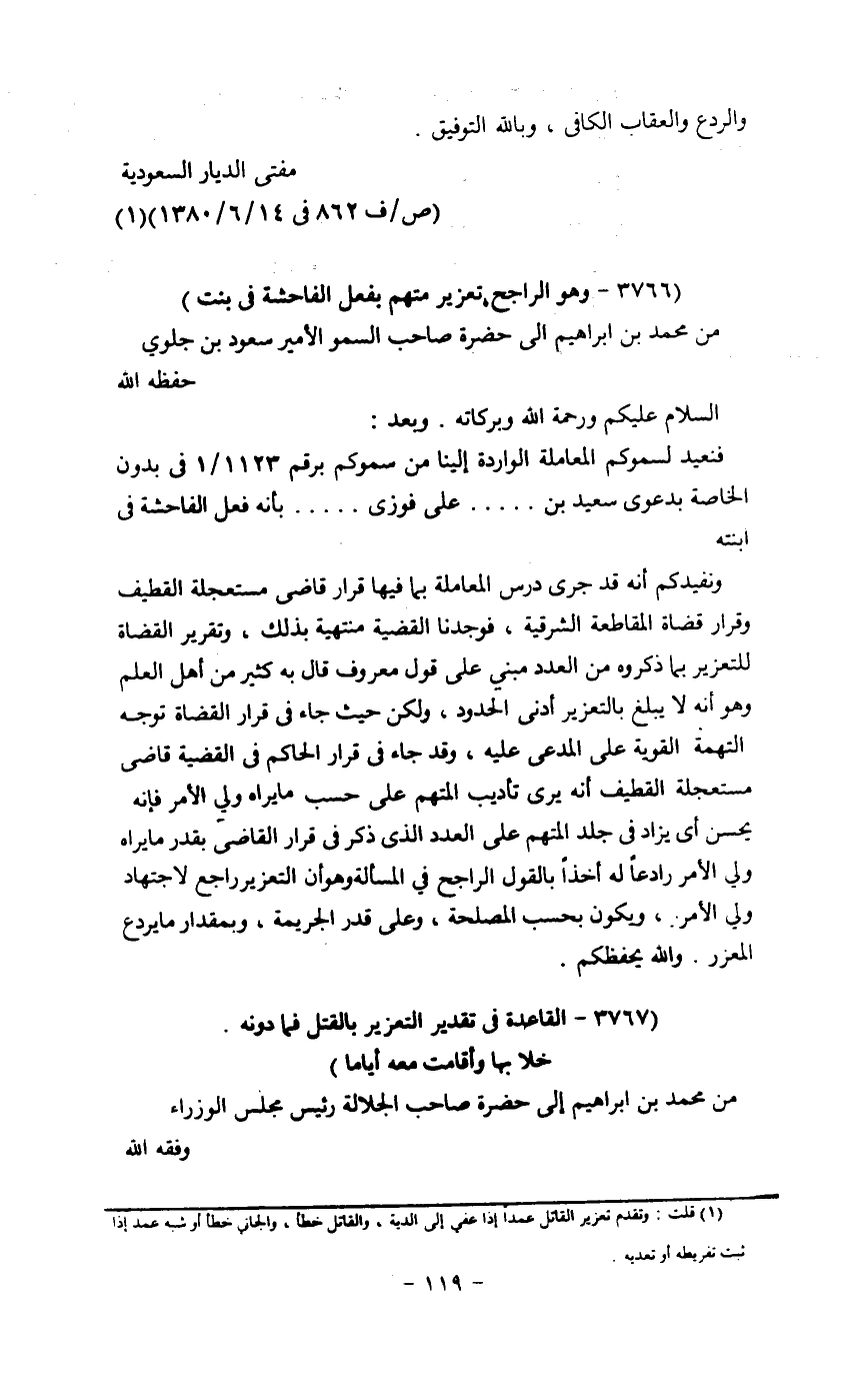 من محمد بن إبراهيم إلى حضرة صاحب الجلالة رئيس مجلس الوزراء