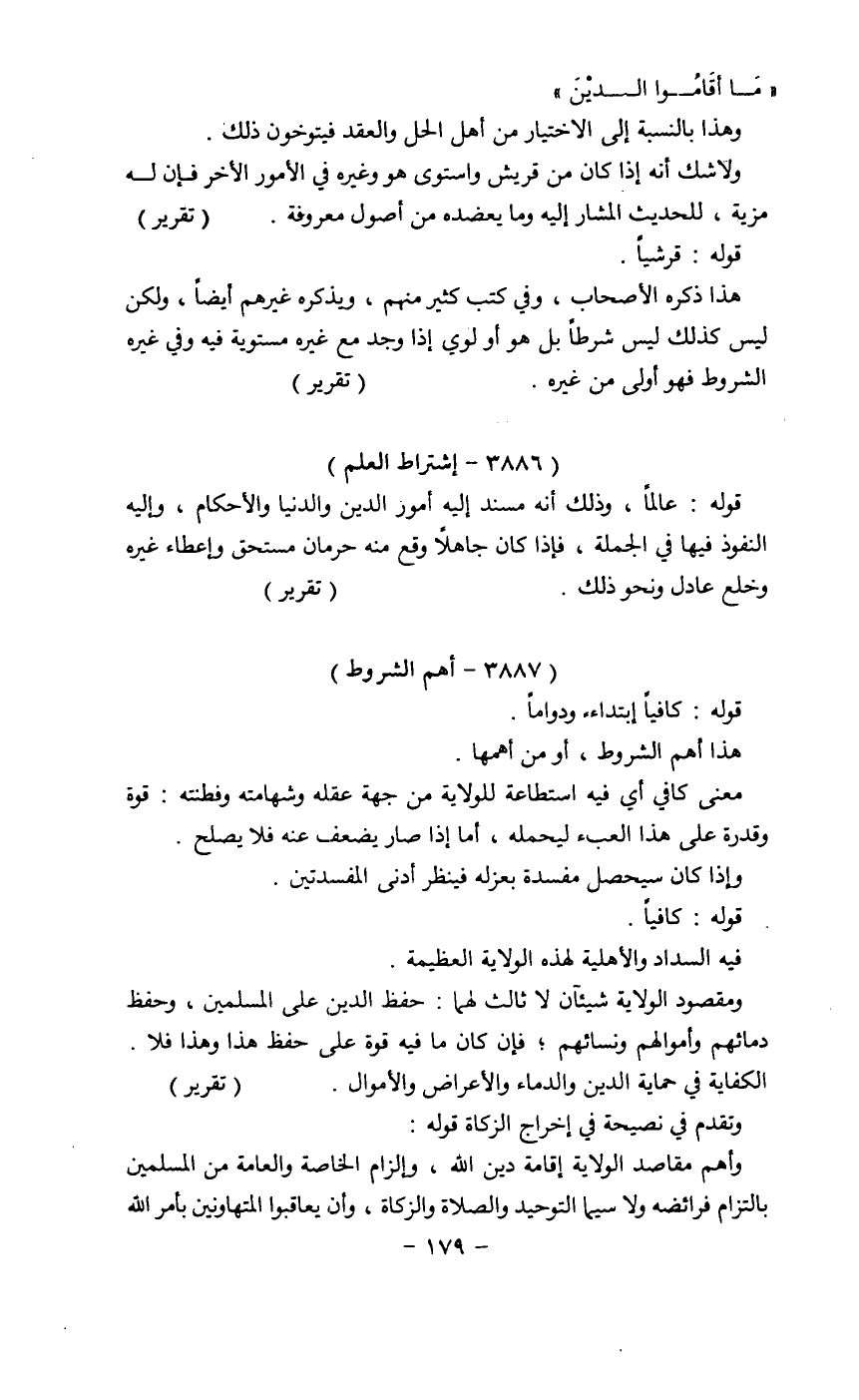 وأهم مقاصد الولاية إقامة دين الله، والزام الخاصة والعامة من المسلمين بالتزام فرائضه ولا سيما التوحيد والصلاه والزكاة، وأن يعاقبوا المتهاونين بأمر الله
