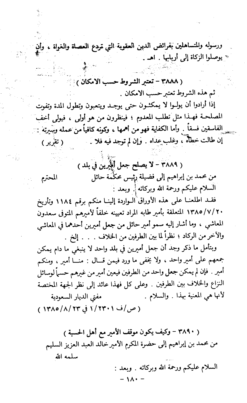 من محمد بن إبراهيم إلى فضيلة رئيس محكمة حائل ... المحترم
