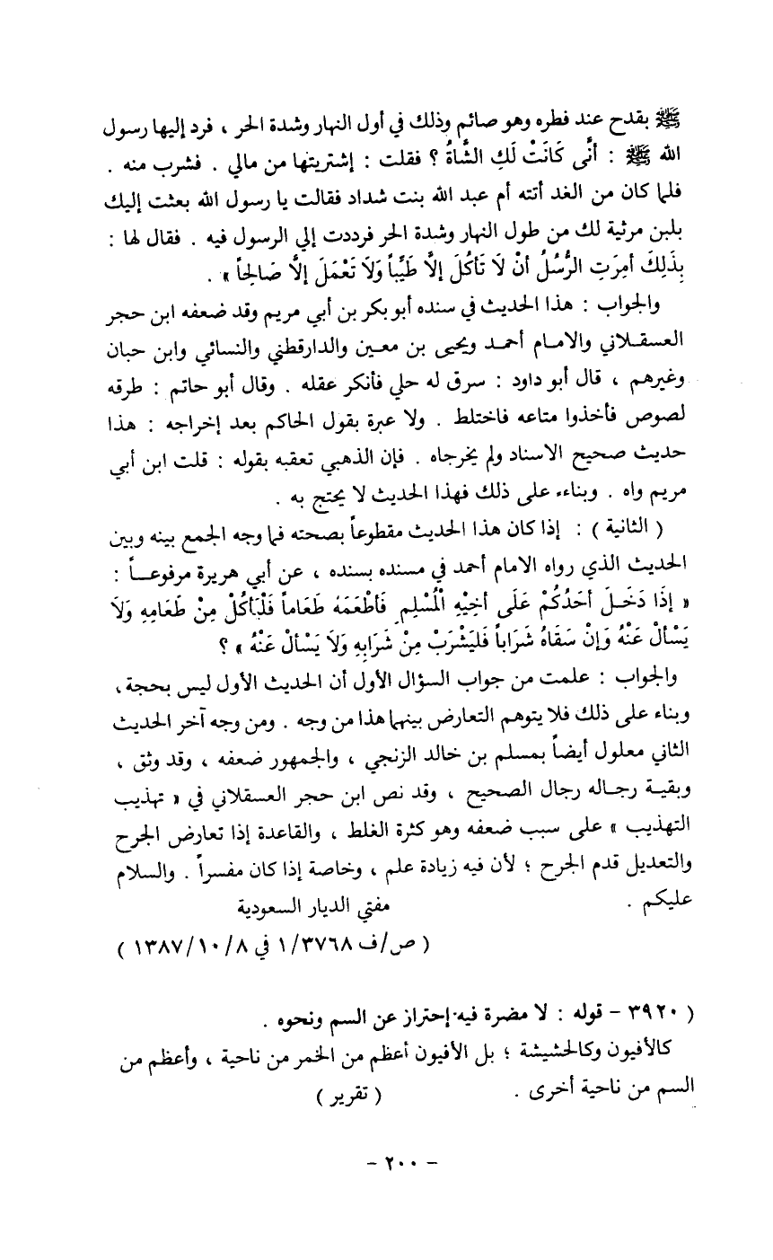 (3920 - قوله: لامضرة فيه أحترازعن السم ونحوه.)