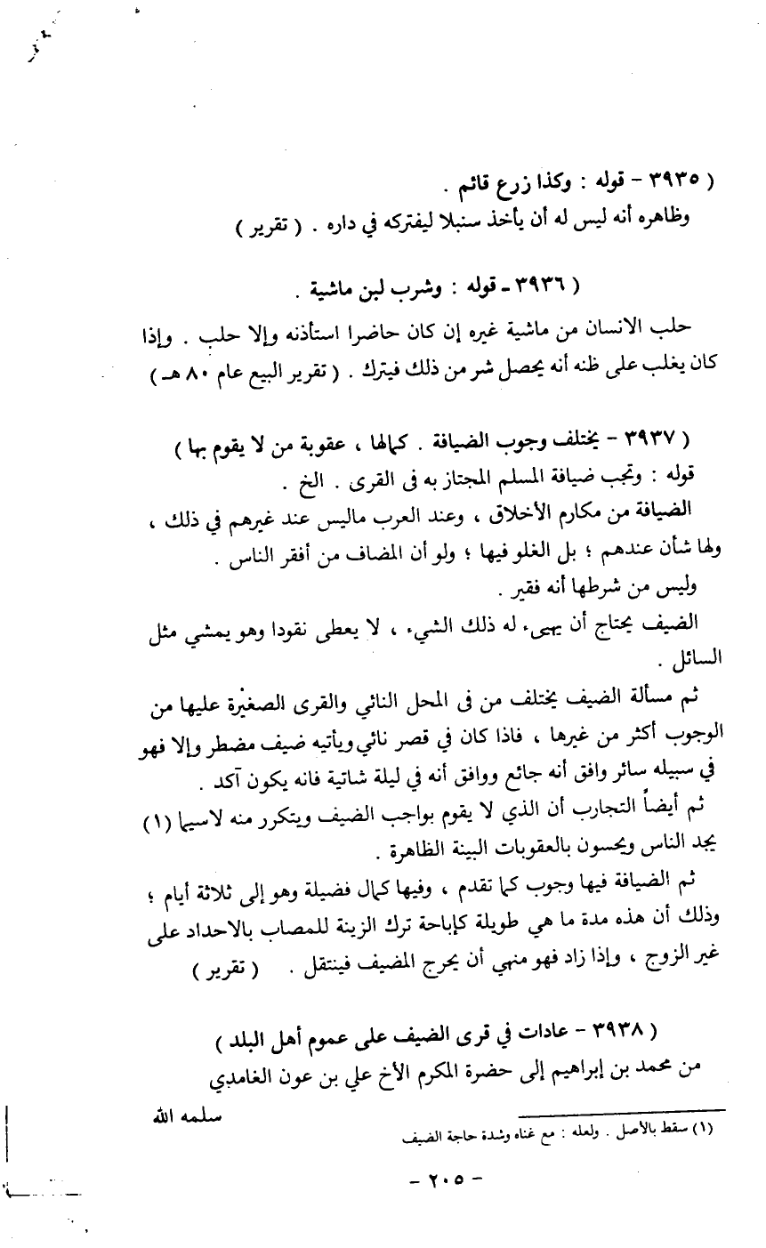 (3937 _ يختلف وجوب الضيافة. كما لها، عقوبة من لا يقوم بها)