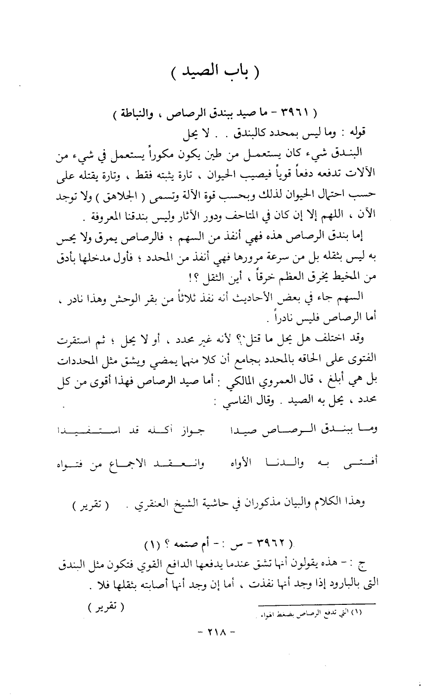 (3961 _ ما صيد ببندق الرصاص. والنباطة)