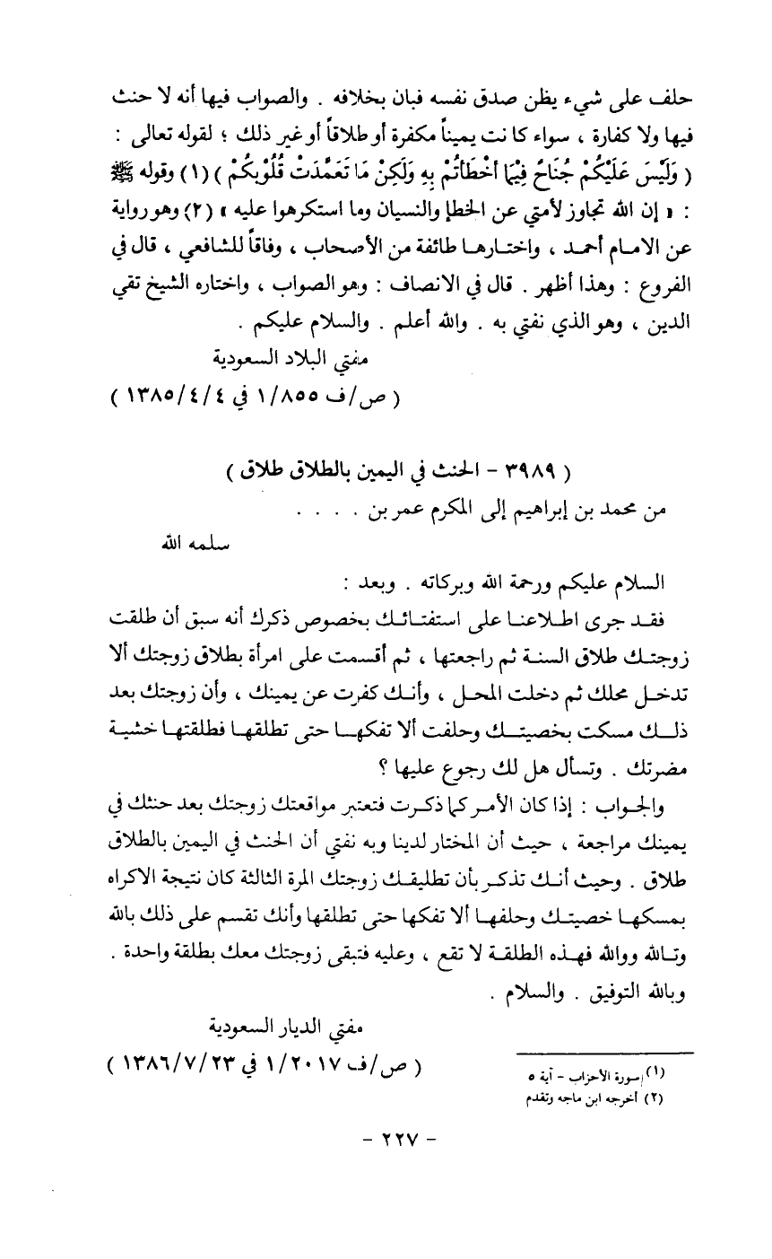 (3989 - الحنث في إلىمين بالطلاق طلاق)