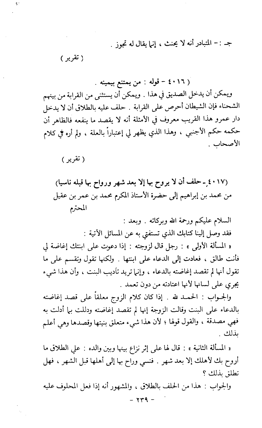فقد وصل إلينا كتابك الذي تستفتى به عن المسائل إلاتيه: -