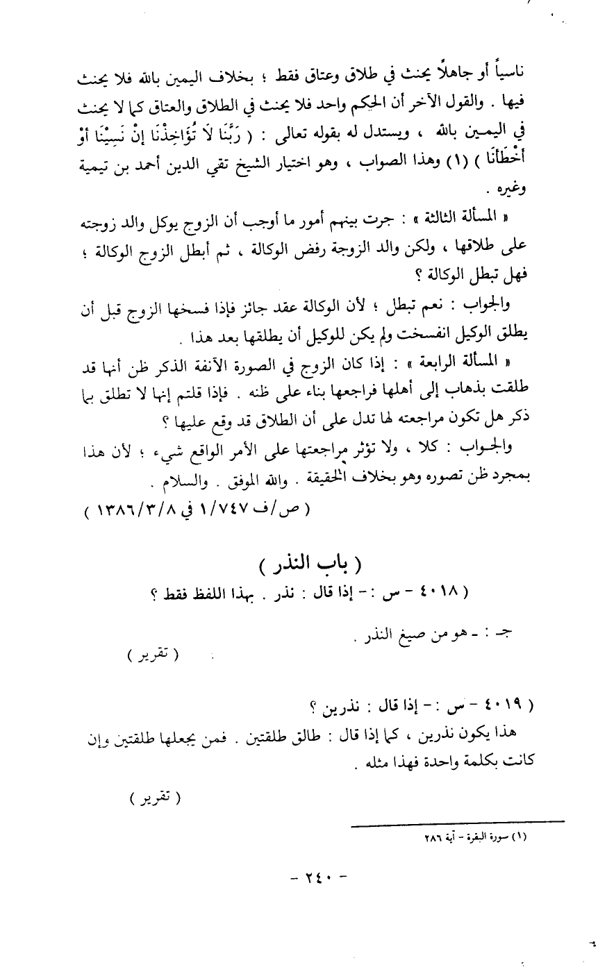 جـ: - هو من صيغ النذر. ... " تقرير "