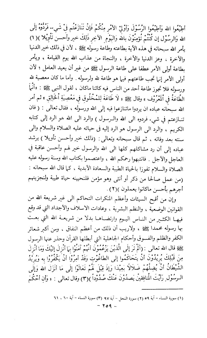(1) سورة النساء آية 65، (2) سورة الشورى آية 10، (3) سورة النساء آية 59