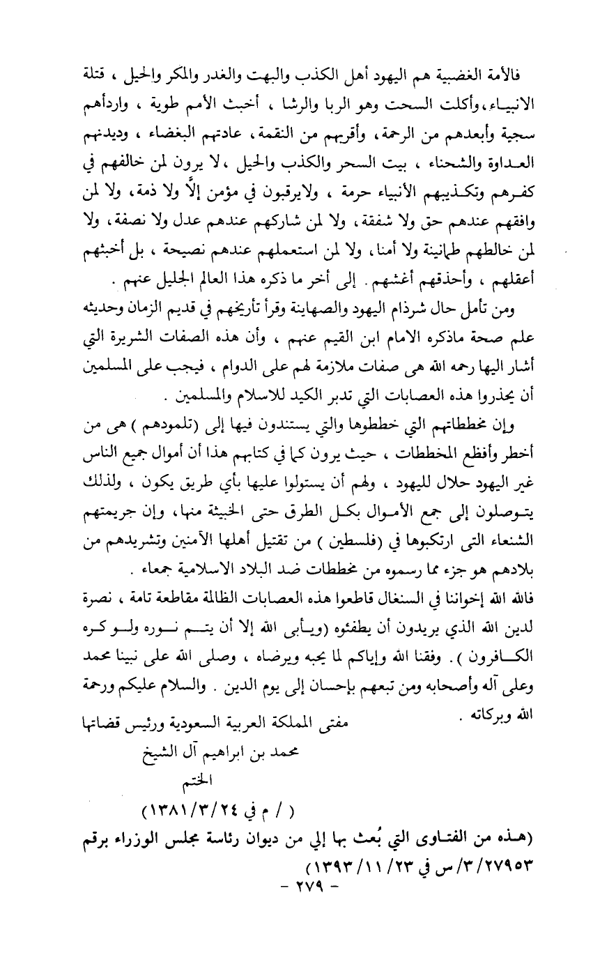 (هذه من الفتاوي التي بعث بها إلى من ديوان رئاسة مجس الوزراء برقم 27953/3/س في 23/11/1393)