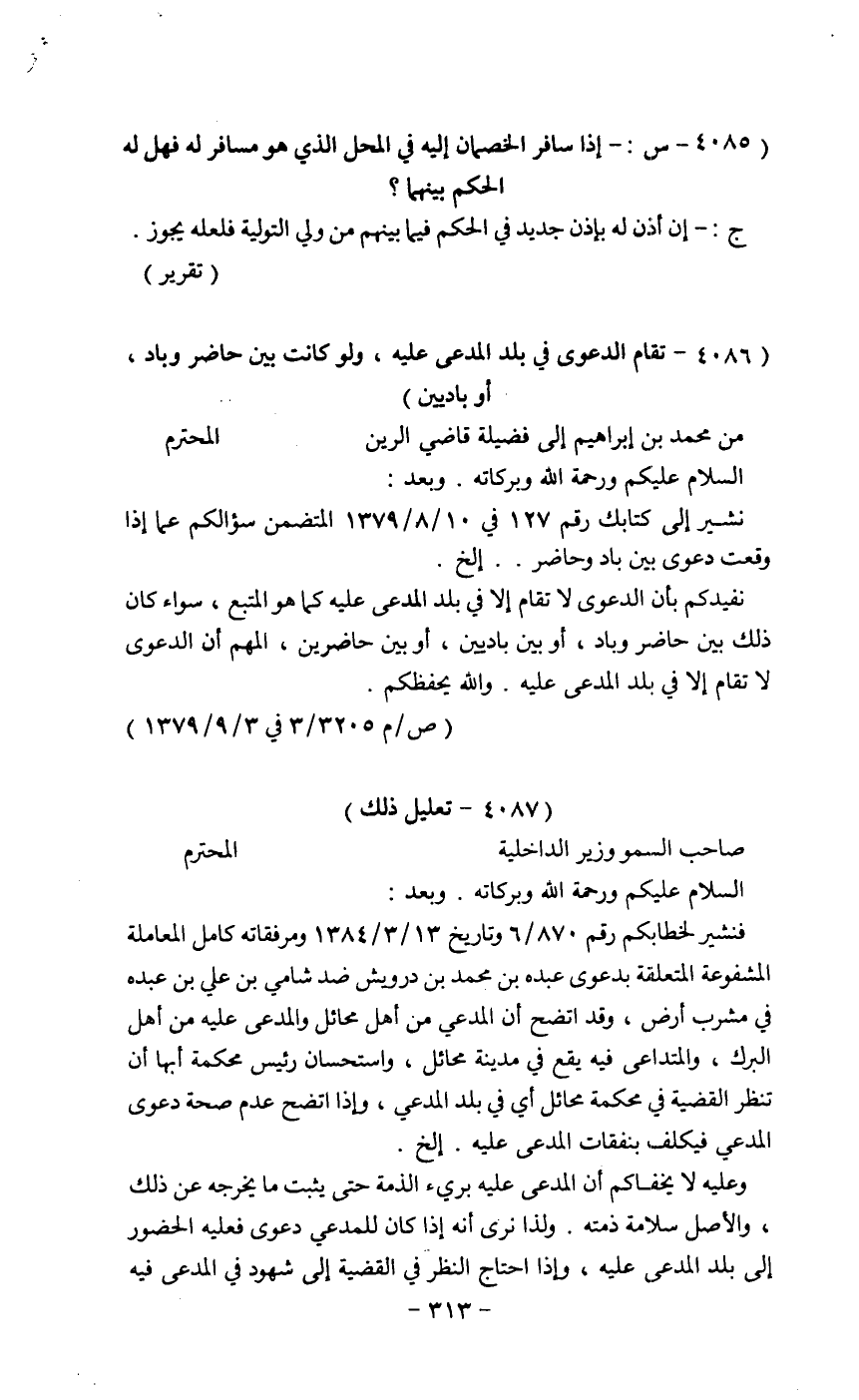 من محمد بن إبراهيم إلى فضيلة قاضي الربن المحترم
