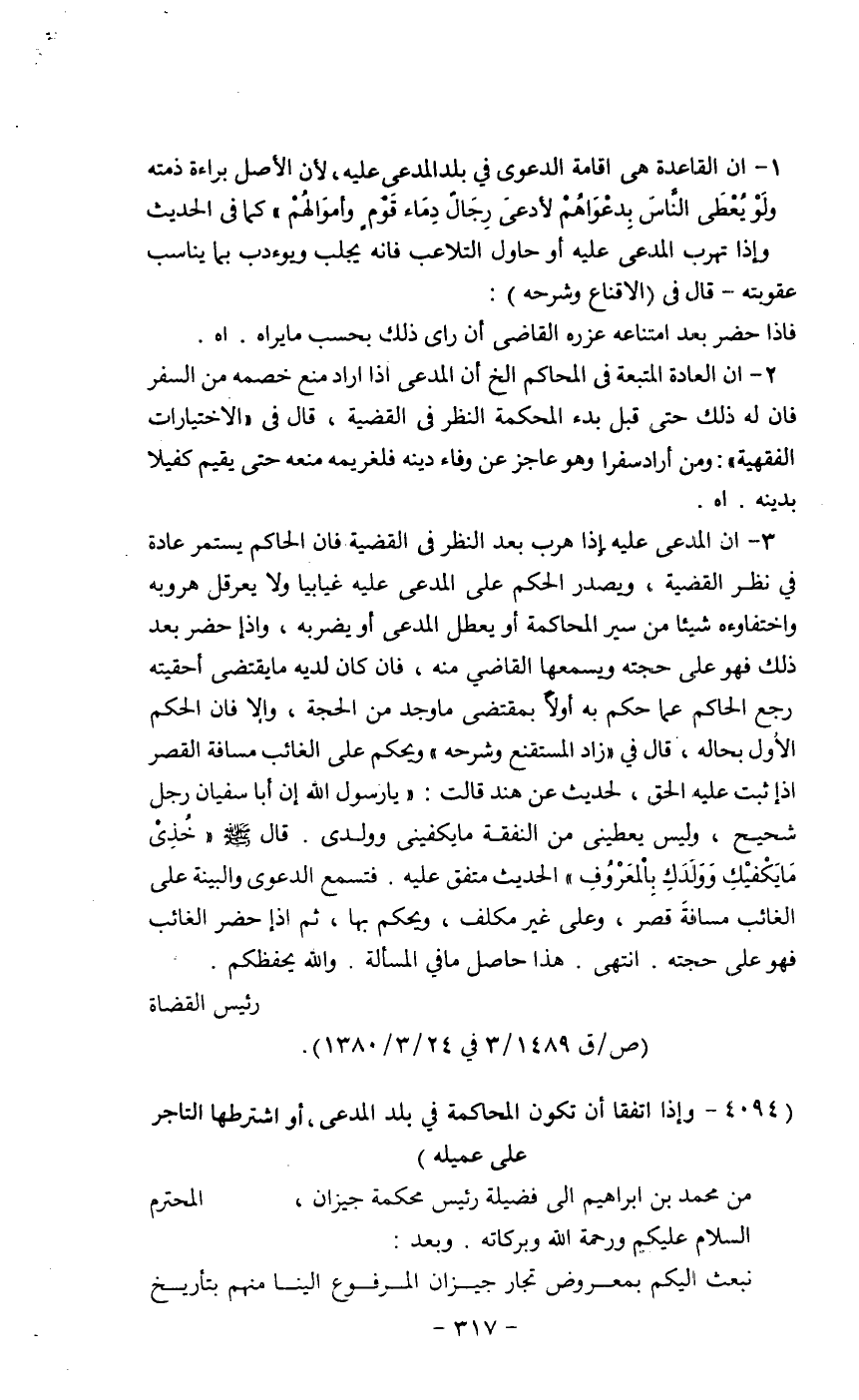 من محمد بن إبراهيم إلى فضيلة رئيس محكمة جيزان، المحترم