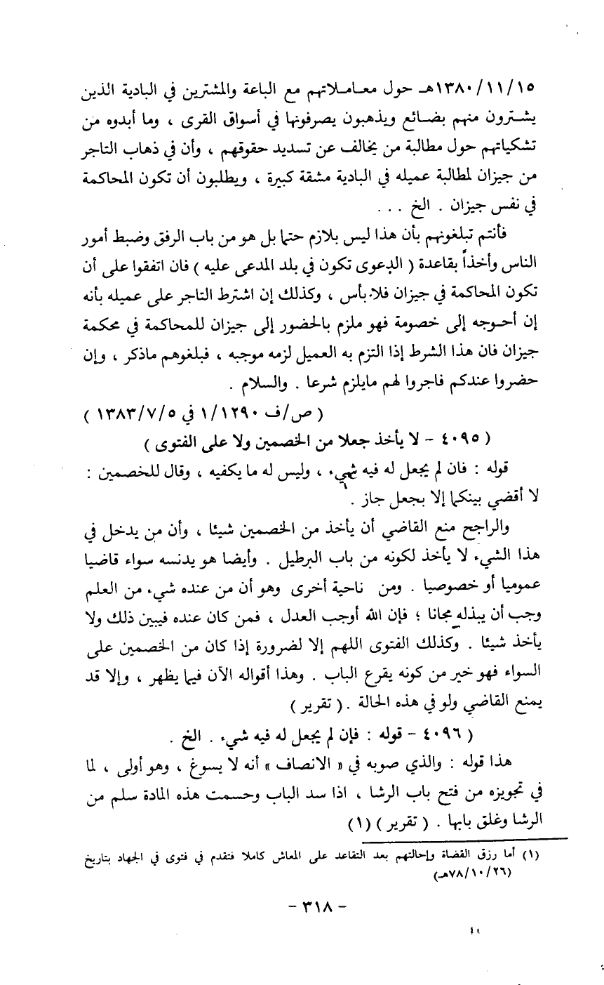 (4095 - لا يأخذ جعلا من الخصمين ولا على الفتوي)