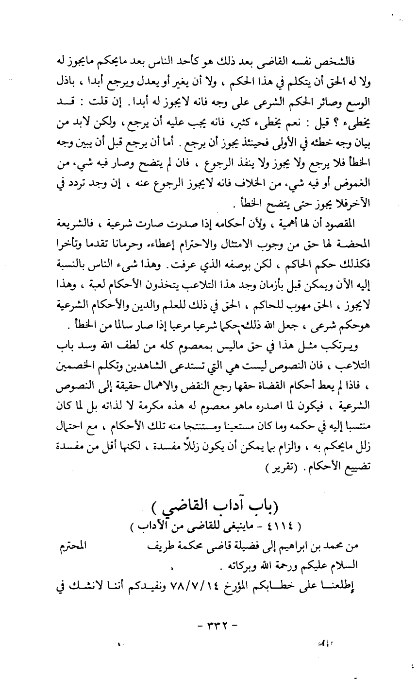 من حمد بن إبراهيم إلى قاضي محكمة طريق