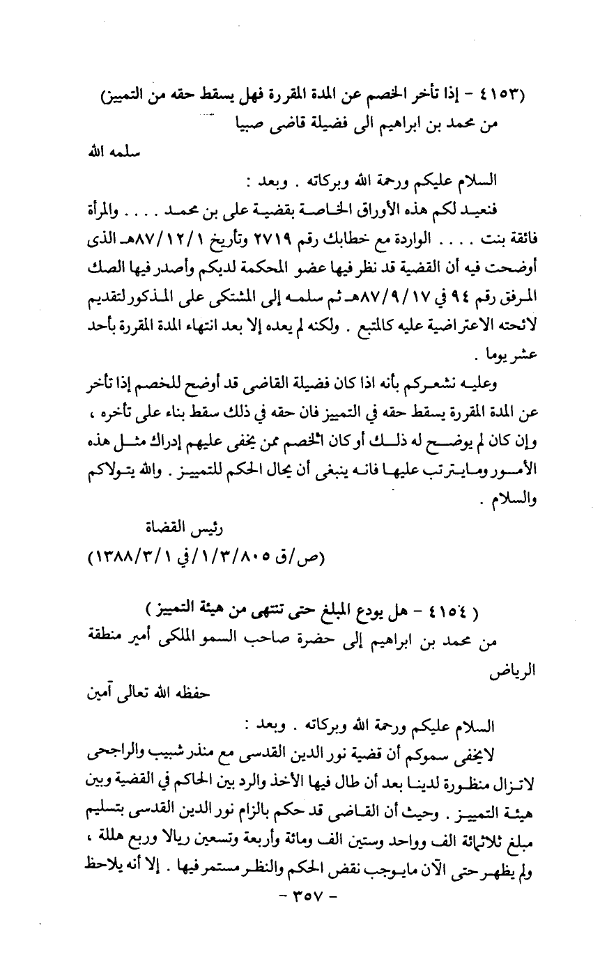 من محمد بن إبراهيم إلى فضيلة قاضي صبيا
