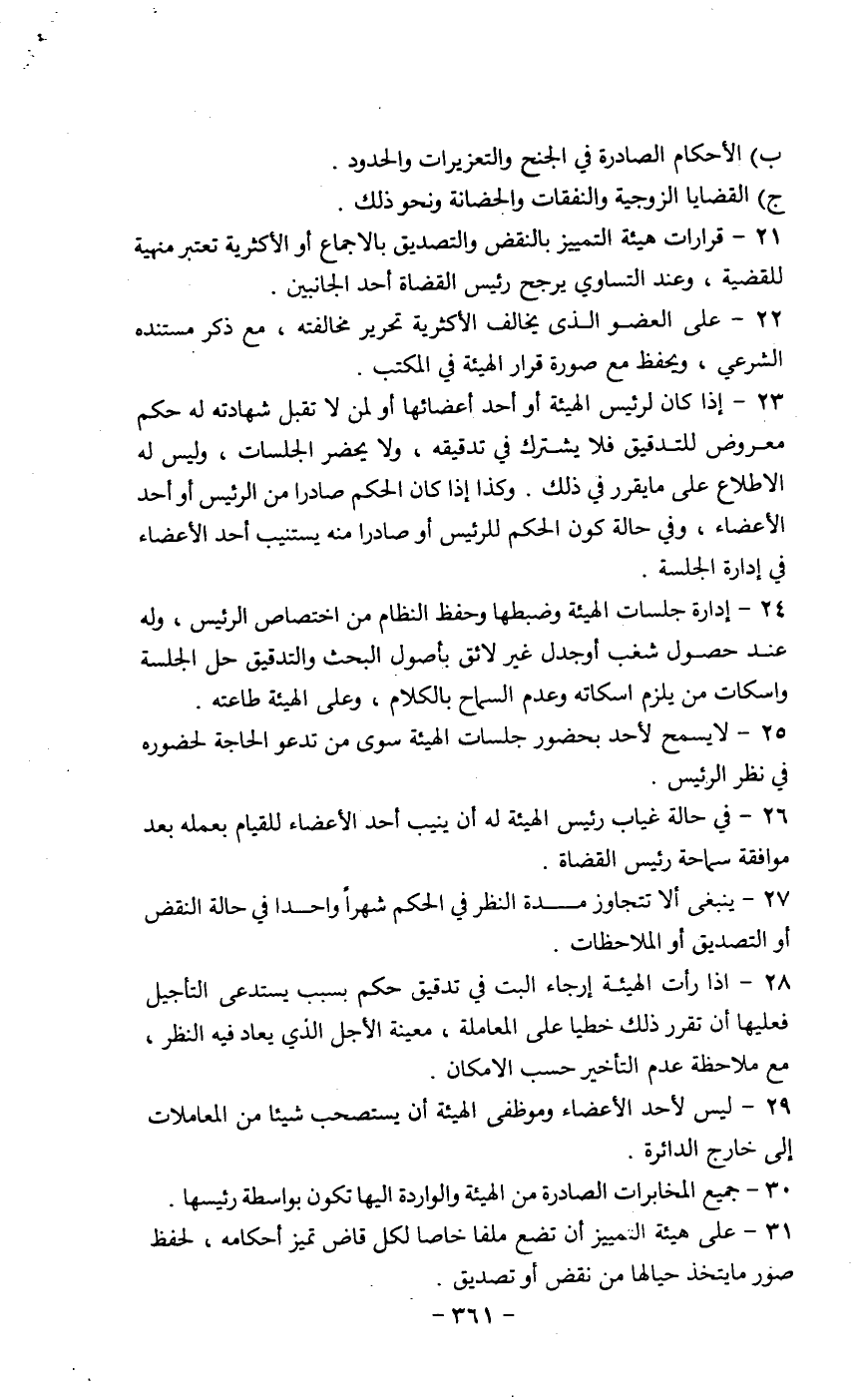 26- في حالة غياب رئيس الهيئة له أن ينيب أحد إلاعضاء للقيام بعملية بعد موافقة سماحة رئيس القضاة