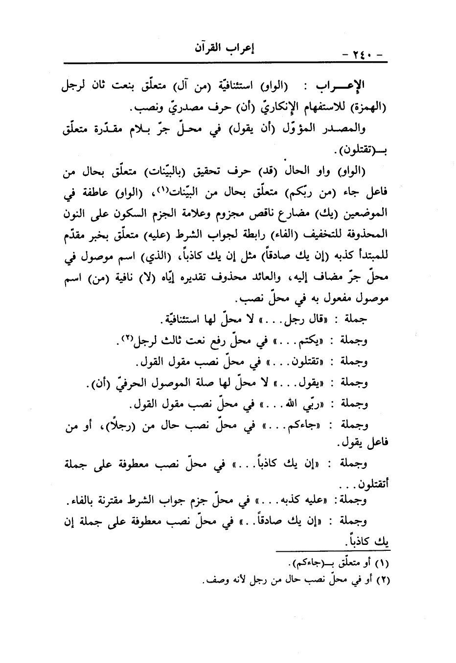 (2) يجوز أن تكون الجملة معطوفة على جملة الاستئناف (أولئك يعرضون..) فلا محلّ لها.