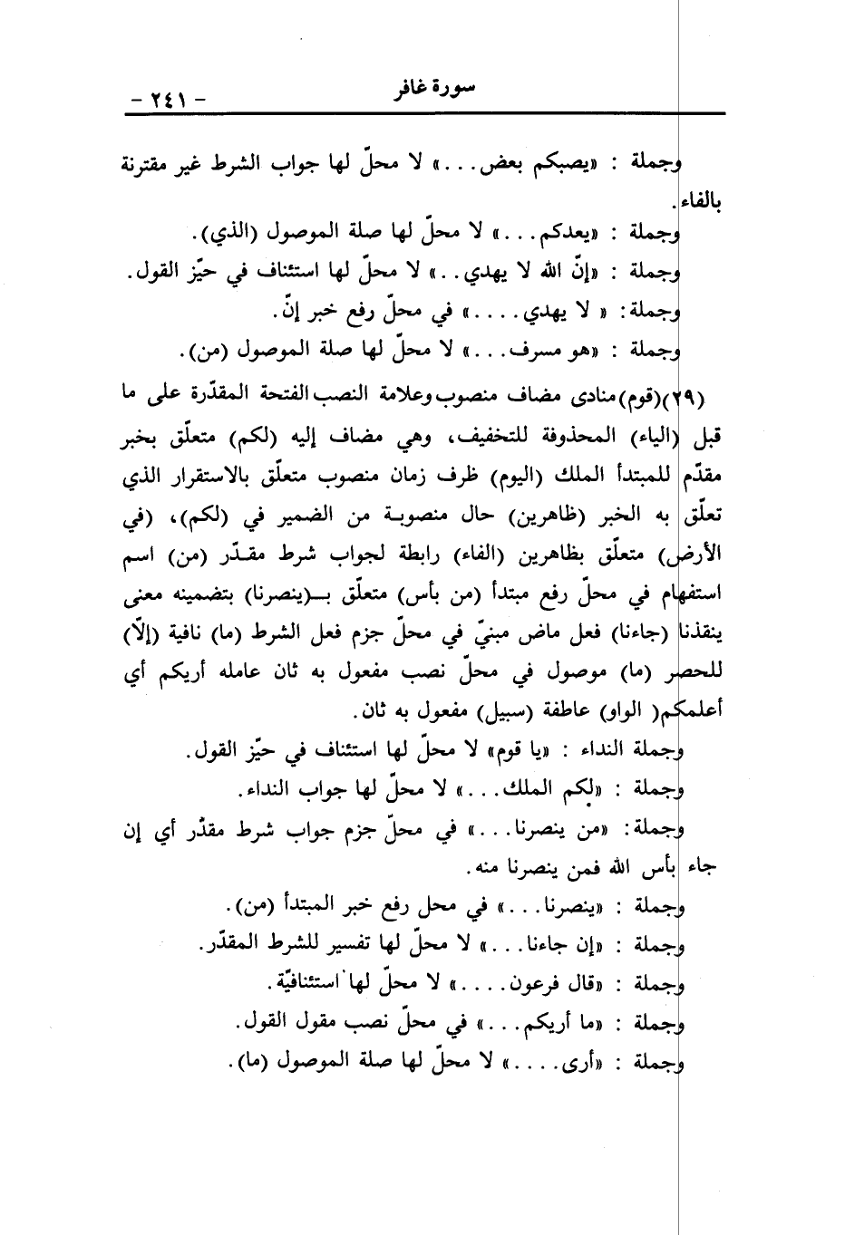 (الذين) موصول في إعرابه عدّة وجوه: الأول: في محلّ جرّ نعت للظالمين. الثاني: في محلّ رفع بدل من (الذين) المتقدّم. الثالث: في محلّ رفع خبر لمبتدأ محذوف وجوبا على الذمّ تقديره هم «1» . الرابع: