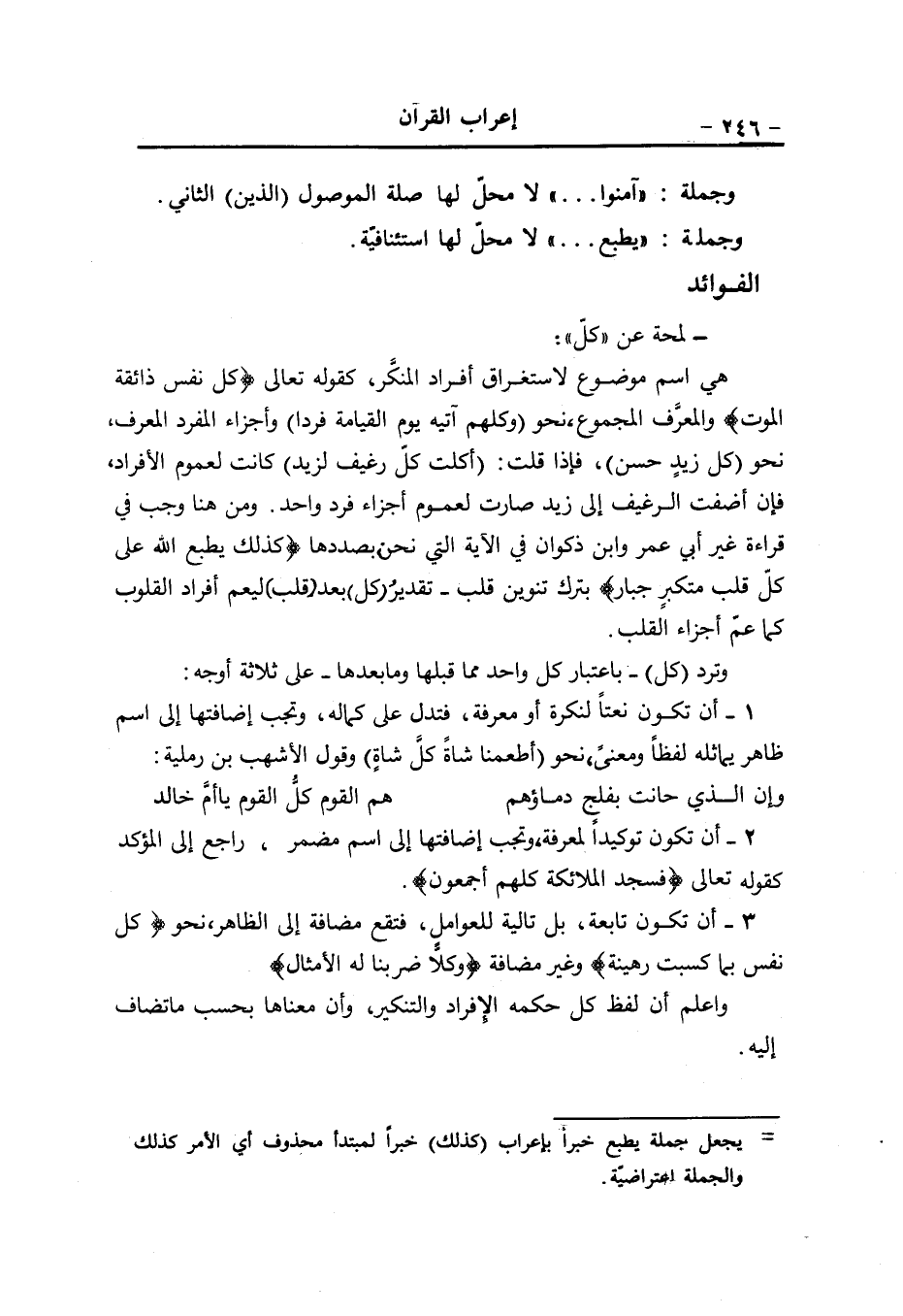 الجرّ الياء (كالأعمى) جارّ ومجرور خبر المبتدأ على حذف مضاف أي كمثل الأعمى، وعلامة الجرّ الكسرة المقدّرة على الألف (الأصمّ) معطوف على الأعمى بالواو مجرور ومثله (البصير) على حذف مضاف أي مثل البصير، مجرور (السميع) معطوفة على البصير بالواو مجرور (هل) حرف استفهام للإنكار «1» (يستويان) مضارع مرفوع وعلامة الرفع ثبوت النون..