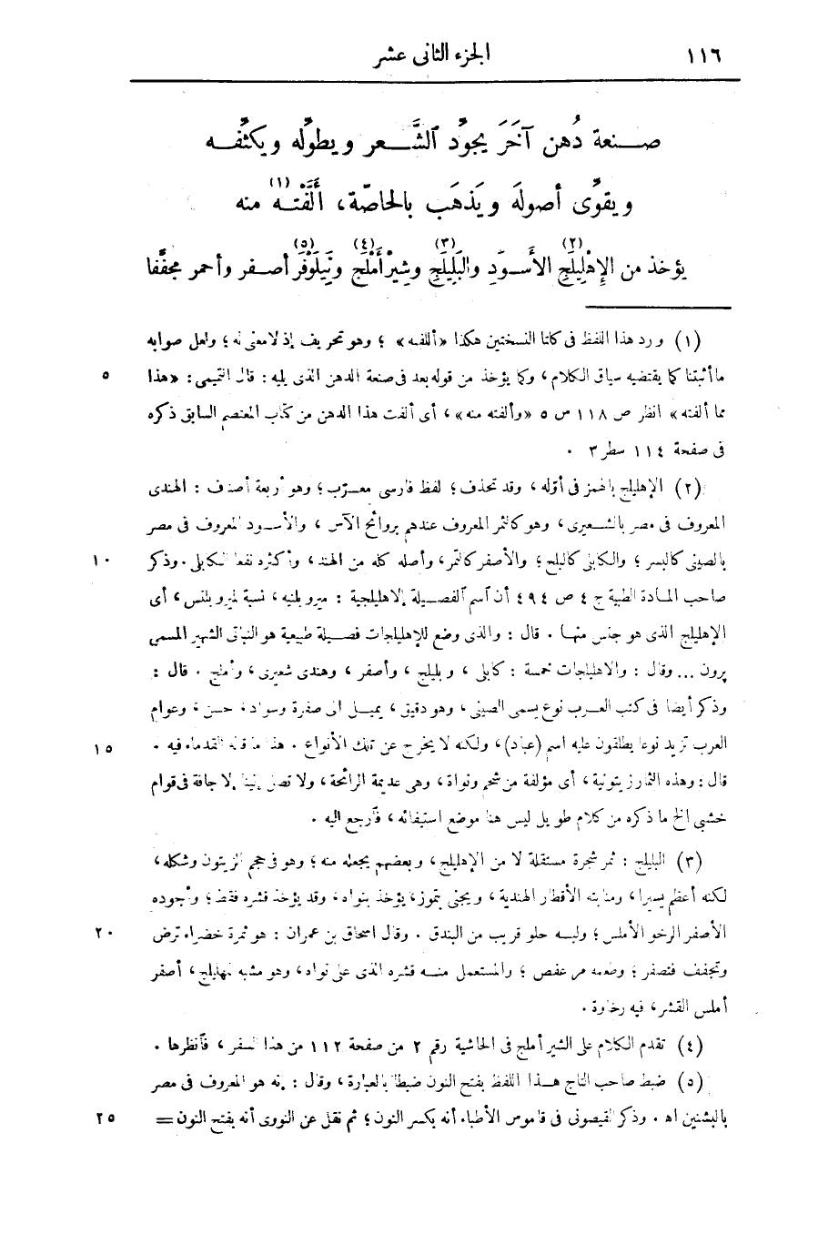 صنعة دهن آخر يجوّد الشّعر ويطوّله ويكثّفه ويقوّى أصوله ويذهب بالحاصّة، ألّفته «1» منه
