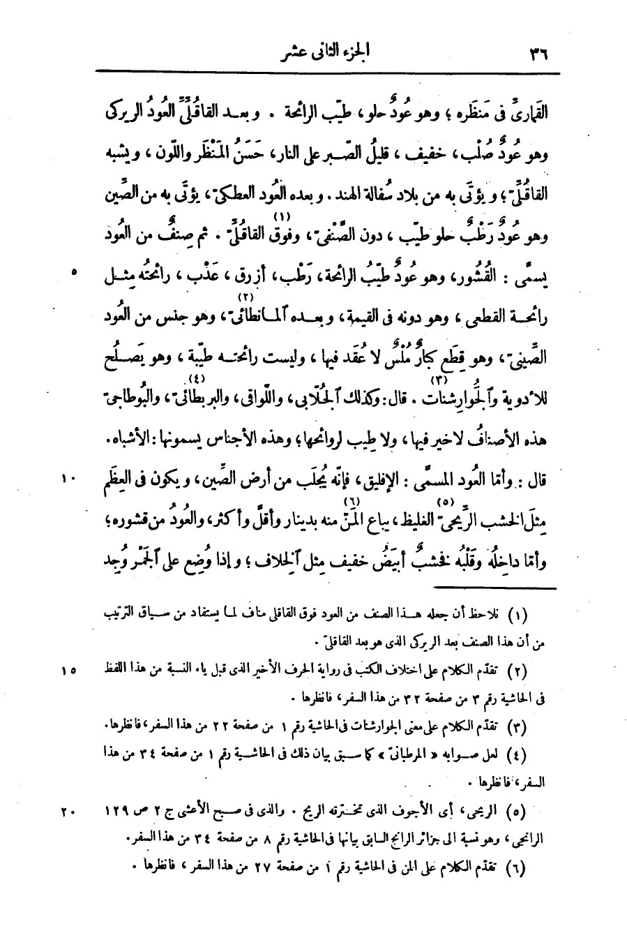 القمارىّ فى منظره؛ وهو عود حلو، طيّب الرائحة. وبعد القاقلّىّ العود الريركى وهو عود صلب، خفيف، قليل الصّبر على النار، حسن المنظر واللّون، ويشبه القاقلّىّ؛ ويؤتى به من بلاد سفالة الهند. وبعده العود العطكىّ، يؤتى به من الصّين وهو عود رطب حلو طيّب، دون الصّنفىّ، وفوق «1» القاقلّىّ. ثم صنف من العود يسمّى: القشور، وهو عود طيّب الرائحة، رطب، أزرق، عدب، رائحته مثل رائحة القطعى، وهو دونه فى القيمة، وبعده المانطائىّ «2» ، وهو جنس من العود الصّينىّ، وهو قطع كبار ملس لا عقد فيها، وليست رائحته طيّبة، وهو يصلح للأدوية والجوارشنات «3» . قال: وكذلك الجلّابى، واللّواقى، والبربطائىّ «4» ، والبوطاجىّ هذه الأصناف لا خير فيها، ولا طيب لروائحها؛ وهذه الأجناس يسمونها: الأشباه.