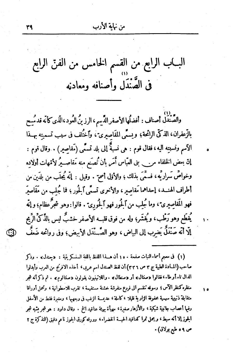 الباب الرابع من القسم الخامس من الفنّ الرابع فى الصّندل «1» وأصنافه ومعادنه