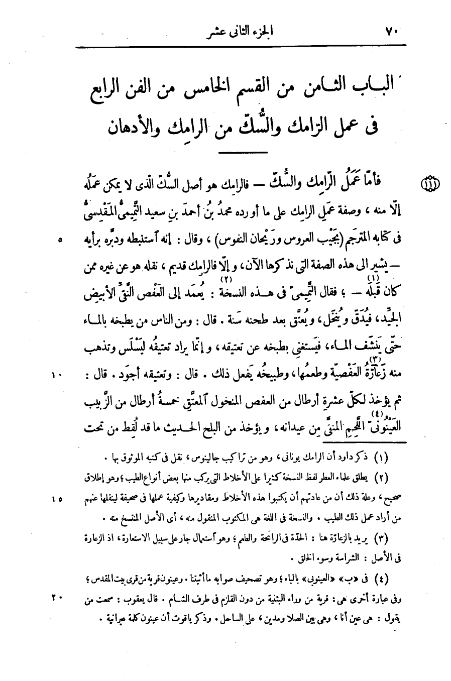 الباب الثامن من القسم الخامس من الفن الرابع فى عمل الرّامك والسّكّ من الرامك والأدهان