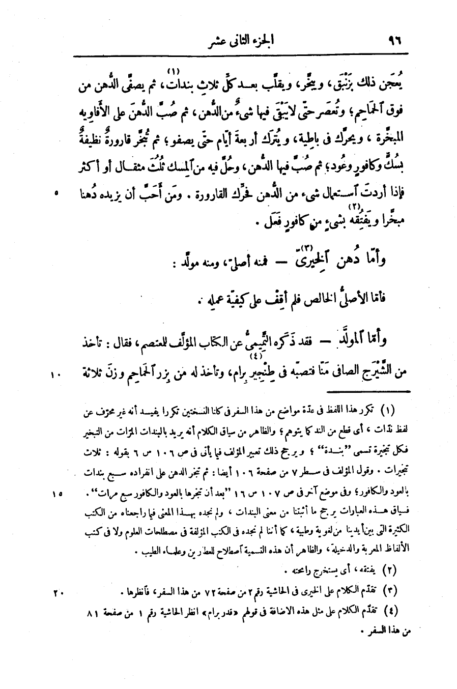 - فقد ذكره التّميمىّ عن الكتاب المؤلّف للمعتصم، فقال: تأخذ من الشّيرج الصافى منّا فتصبّه فى طنجير «4» برام، وتأخذ له من بزر الحماحم وزن ثلاثة