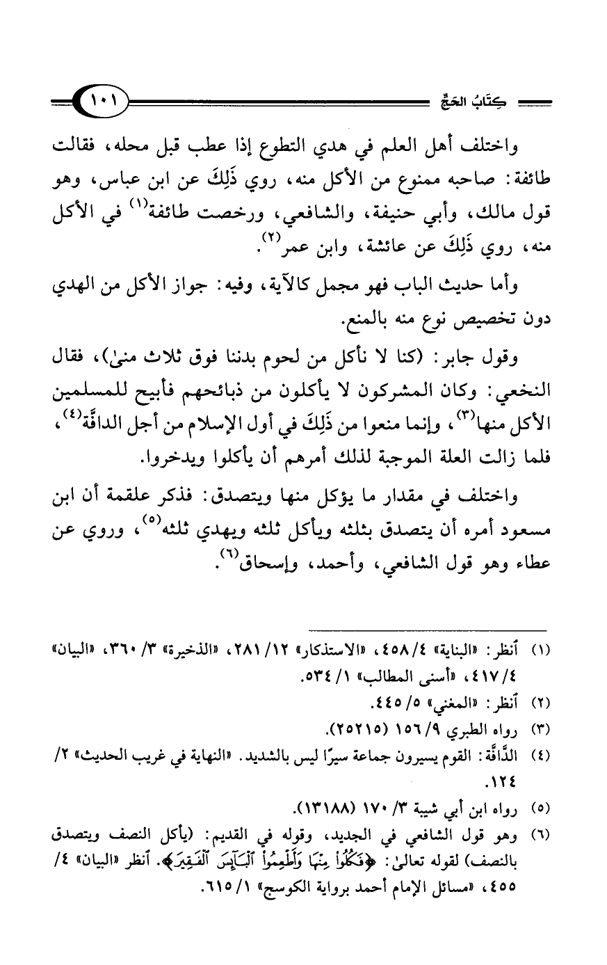 (¬1) انظر: "البناية" 4/ 458، "الاستذكار" 12/ 281، "الذخيرة" 3/ 360، "البيان" 4/ 417، "أسنى المطالب" 1/ 534.