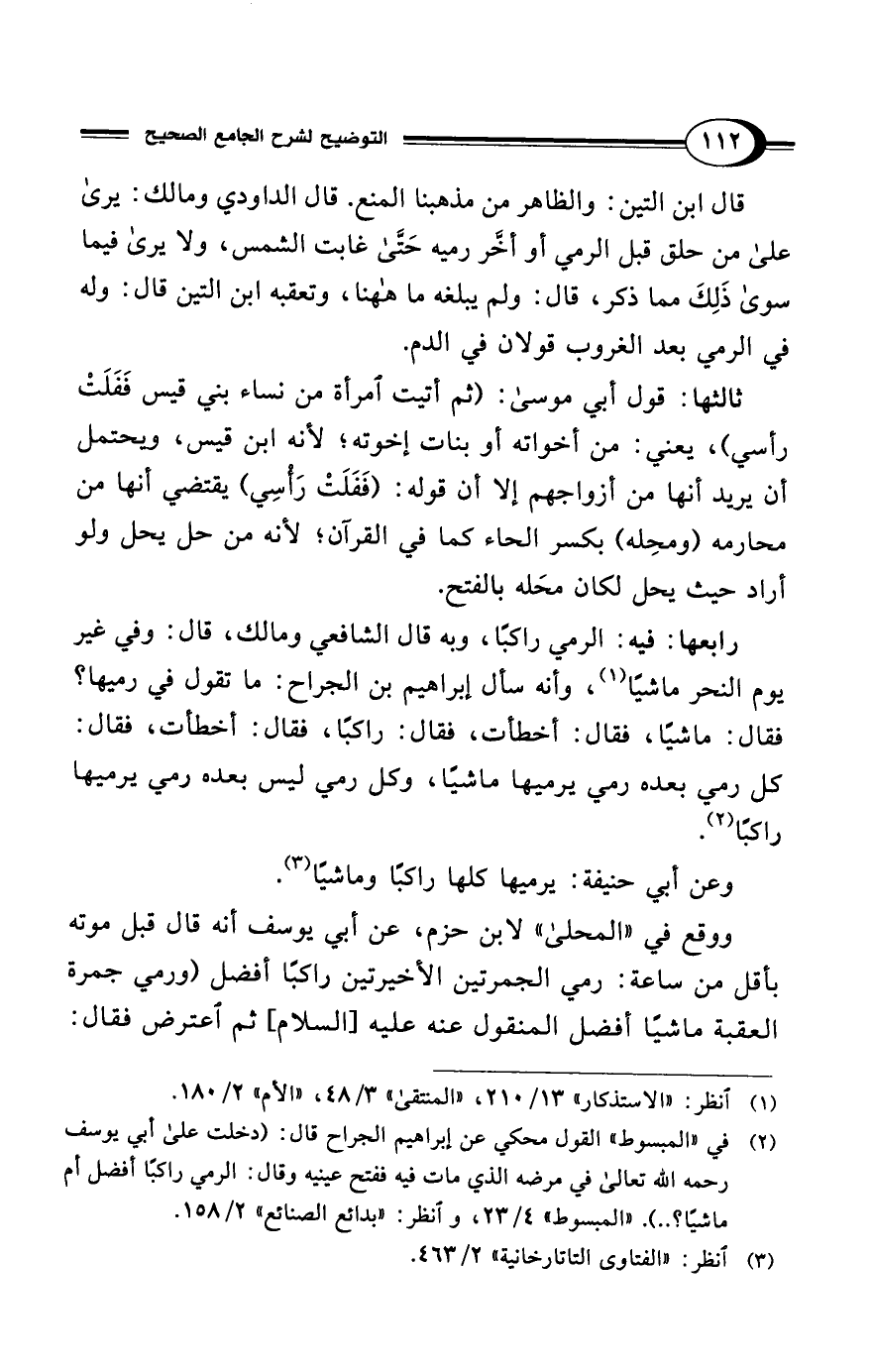 (¬2) في "المبسوط" القول محكي عن إبراهيم الجراح قال: (دخلت على أبي يوسف رحمه الله تعالى في مرضه الذي مات فيه ففتح عينيه وقال: الرمي راكبًا أفضل أم ماشيًا؟ ..). "المبسوط" 4/ 23، وانظر: "بدائع الصنائع" 2/ 158.