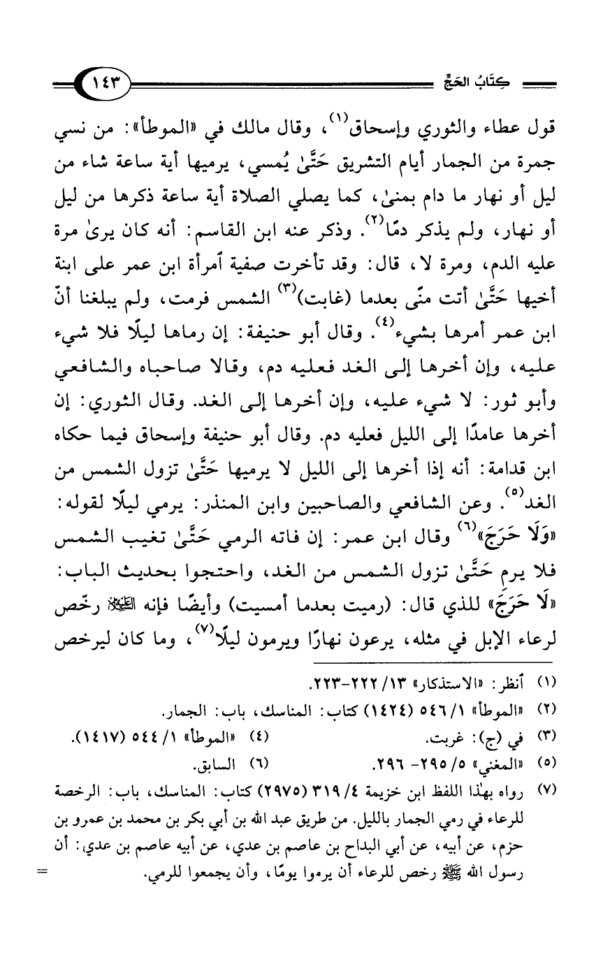 (¬2) "الموطأ" 1/ 546 (1424) كتاب: المناسك، باب: الجمار.