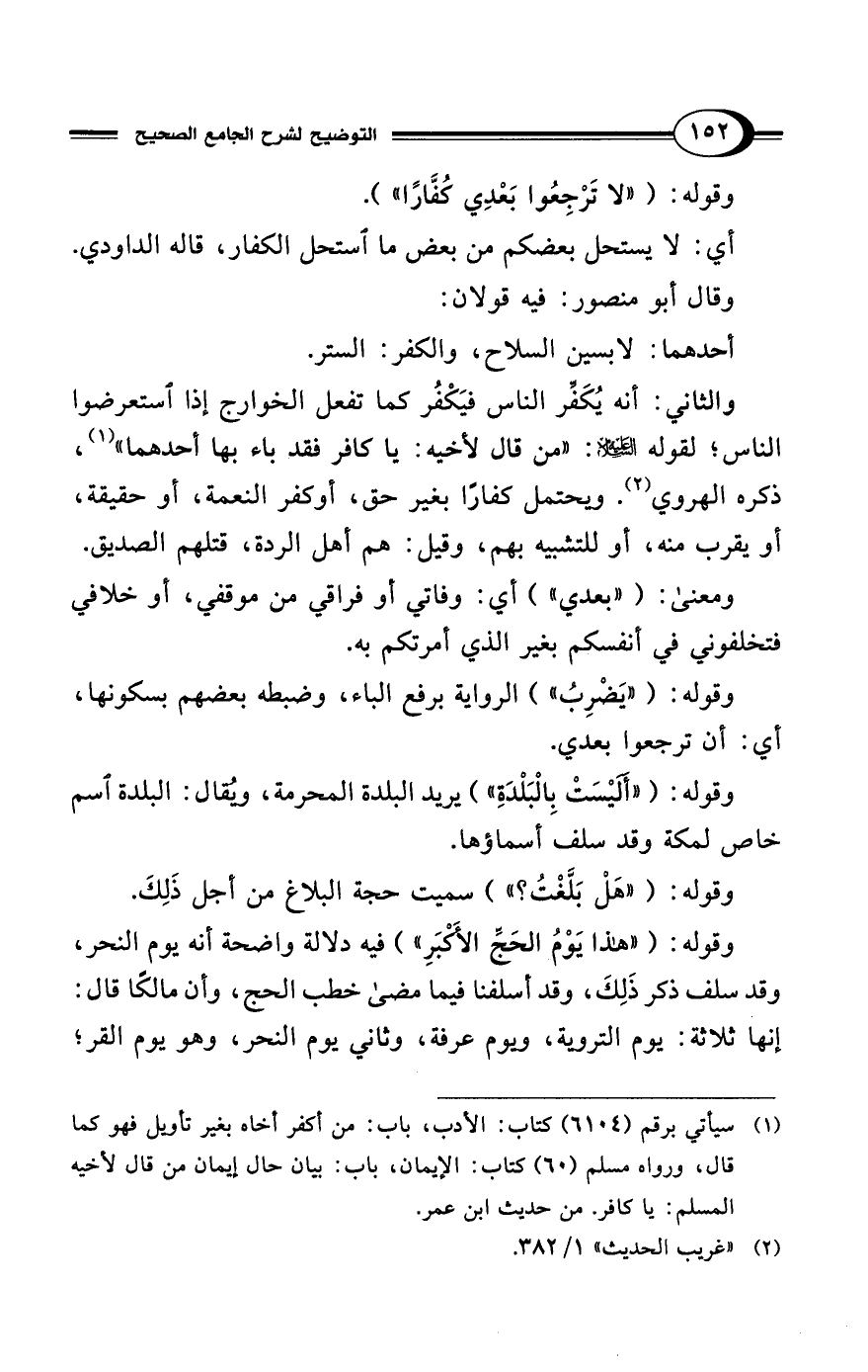 وقوله: ("لا تَرْجِعُوا بَعْدِي كُفَّارًا").
