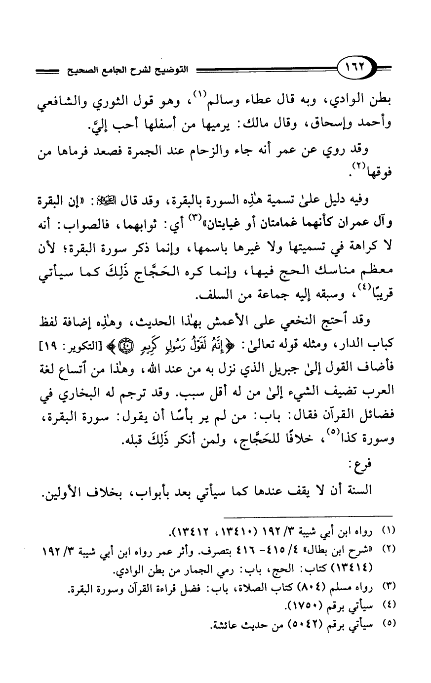 (¬2) "شرح ابن بطال" 4/ 415 - 416 بتصرف. وأثر عمر رواه ابن أبي شيبة 3/ 192 (13414) كتاب: الحج، باب: رمي الجمار من بطن الوادي.