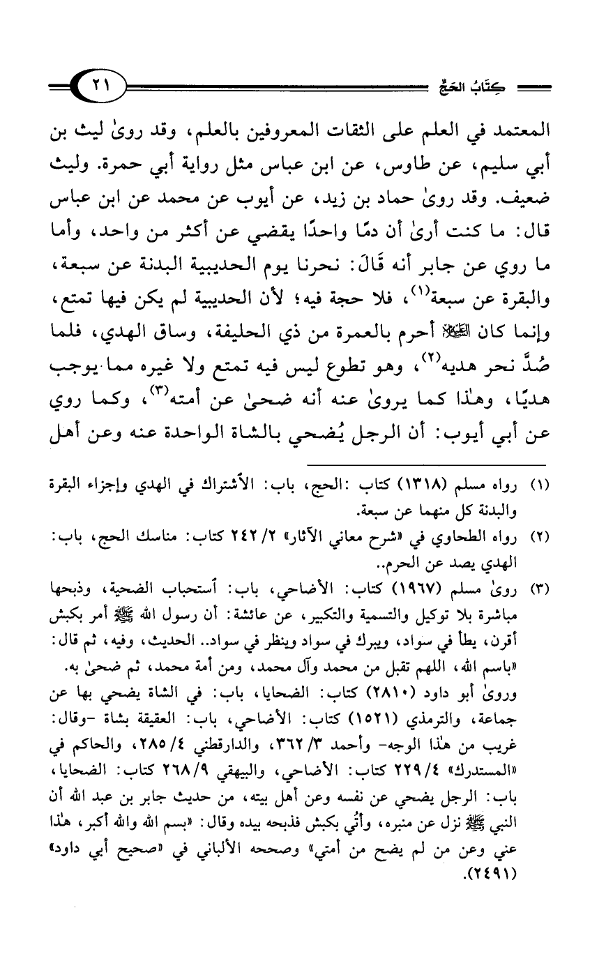 (¬1) رواه مسلم (1318) كتاب: الحج، باب: الاشتراك في الهدي وإجزاء البقرة والبدنة كل منهما عن سبعة.