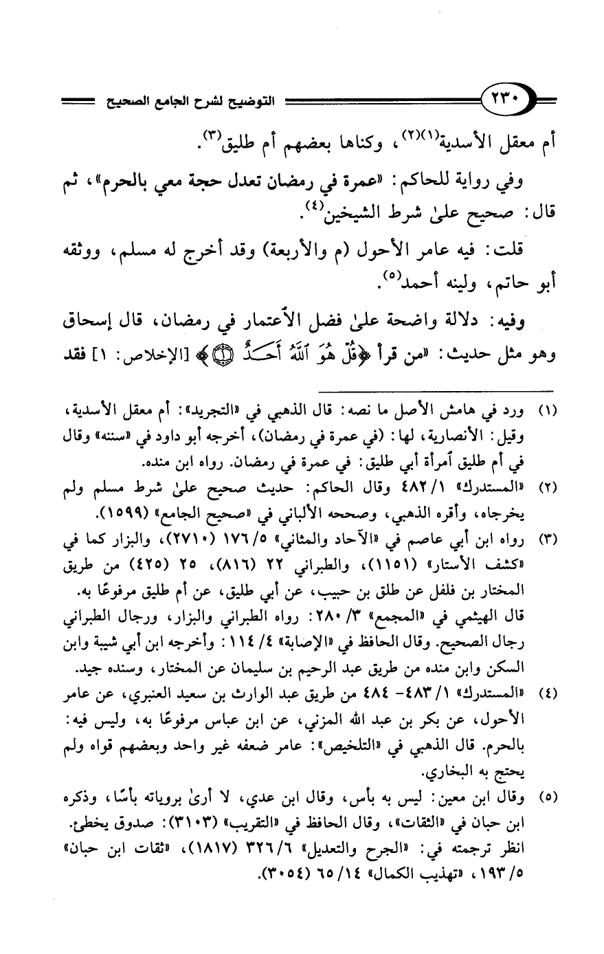 (¬1) ورد في هامش الأصل ما نصه: قال الذهبي في "التجريد": أم معقل الأسدية، وقيل: الأنصارية، لها: (في عمرة في رمضان)، أخرجه أبو داود في "سننه" وقال في أم طليق امرأة أبي طليق: في عمرة في رمضان. رواه ابن مسنده.